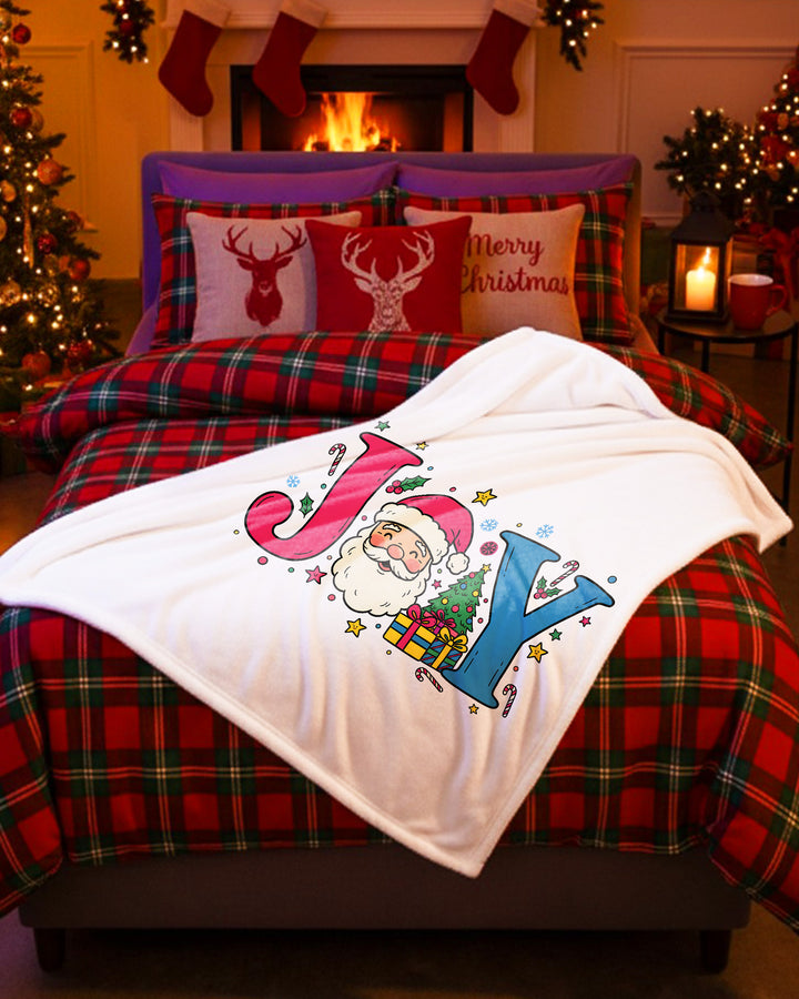 Blanket Joy Santa Christmas Tree Gifts Happy Christmas GBL0138