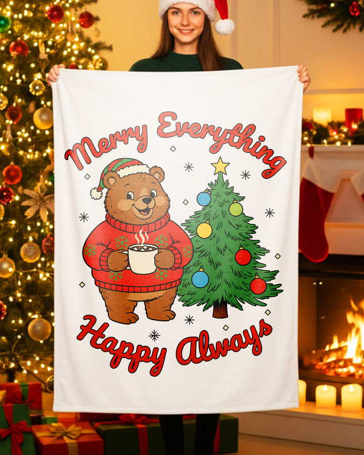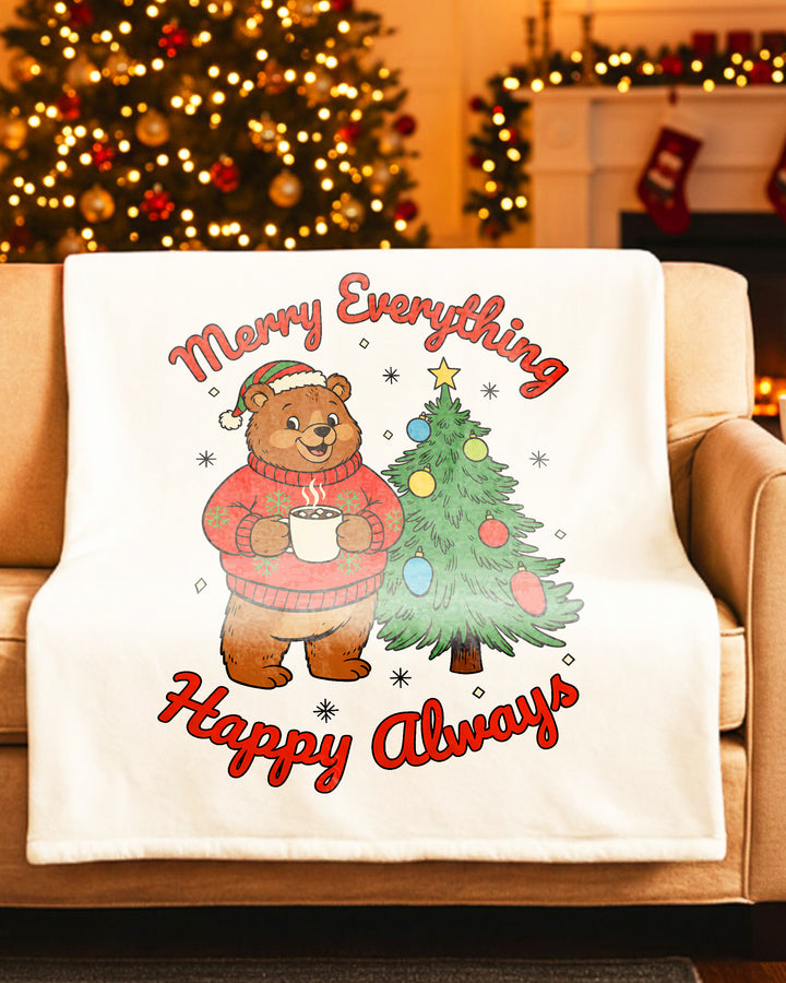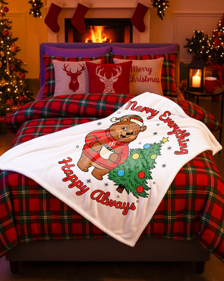 Blanket Merry Everything Happy Always Bear Christmas Tree Happy Christmas GBL026
