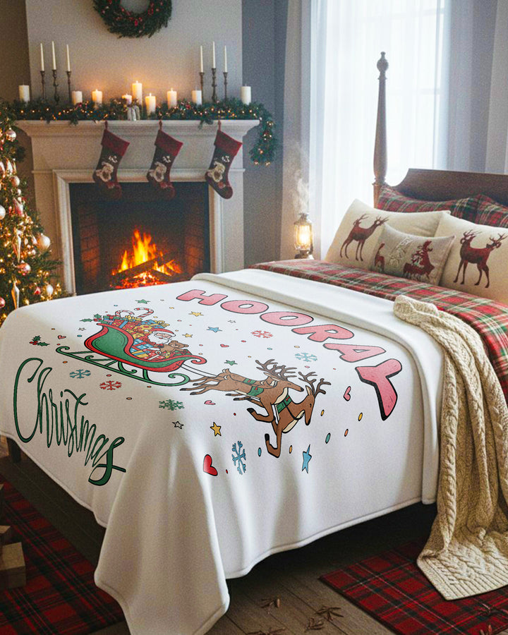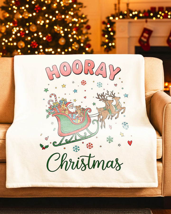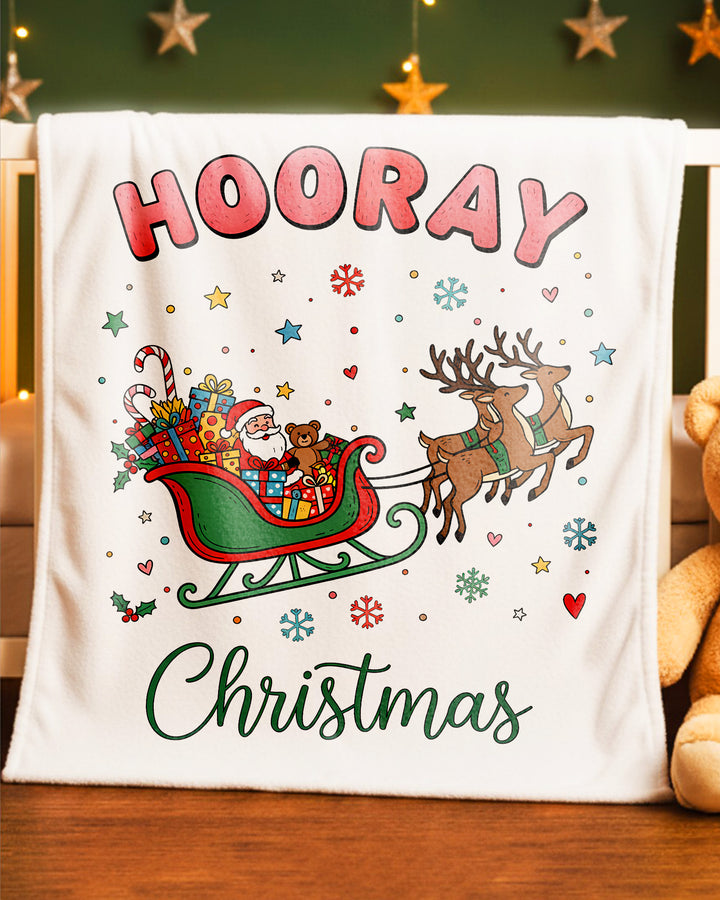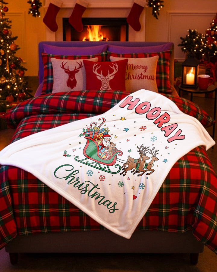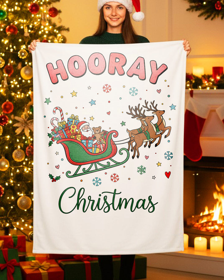 Blanket Santa Sleigh Christmas Reindeer Gifts Hooray Happy Christmas GBL0145