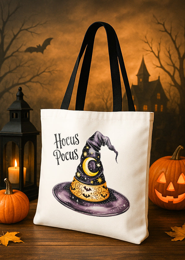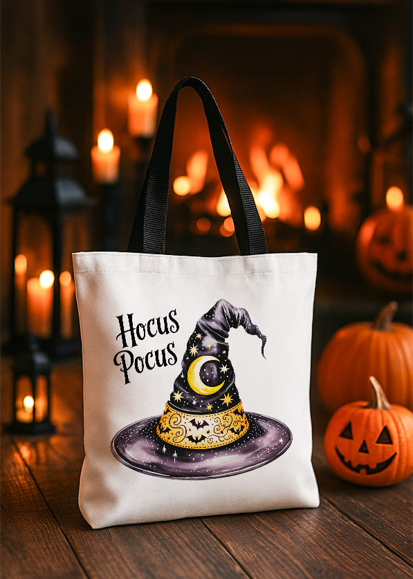 Canvas Tote Witch Hat Moon Stars Bats Cute Halloween GTT0236