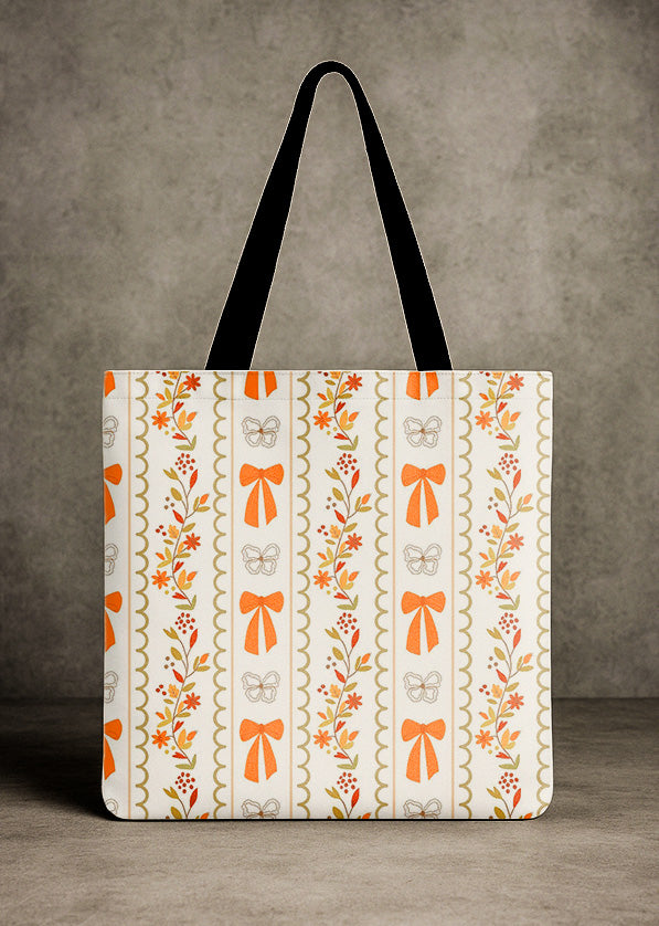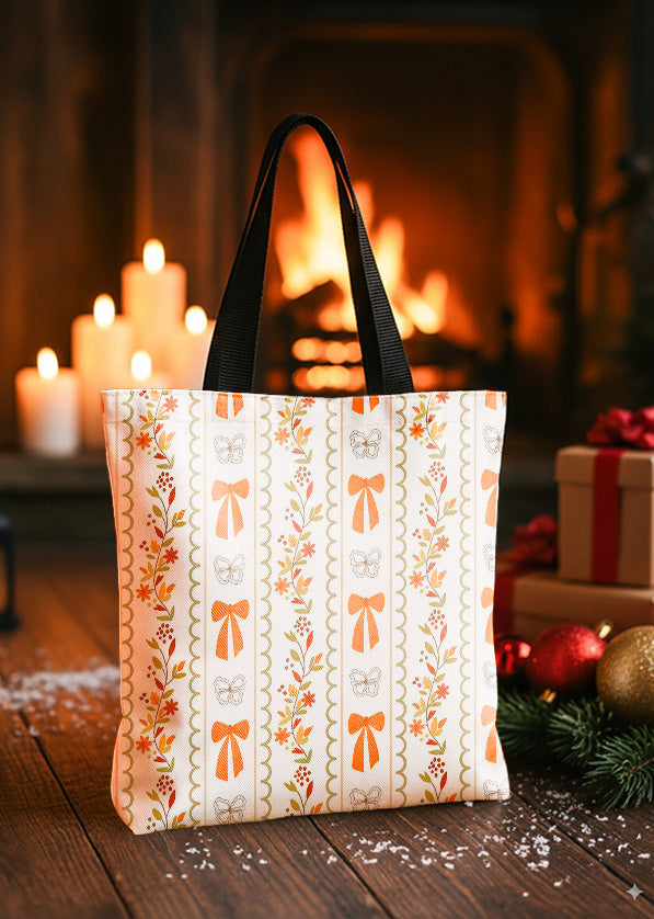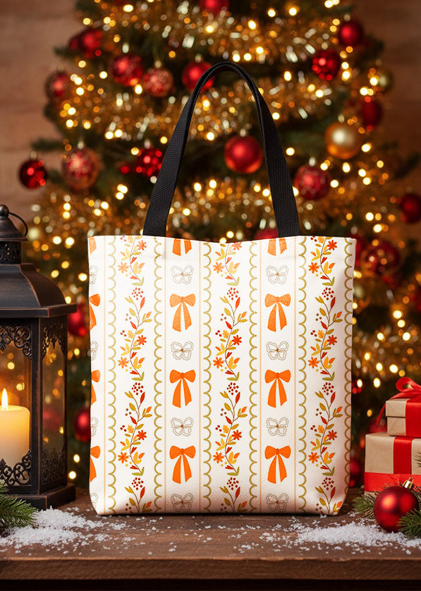 Canvas Totebag Bow Ribbon and Flower Pattern Cute Christmas GTT0291