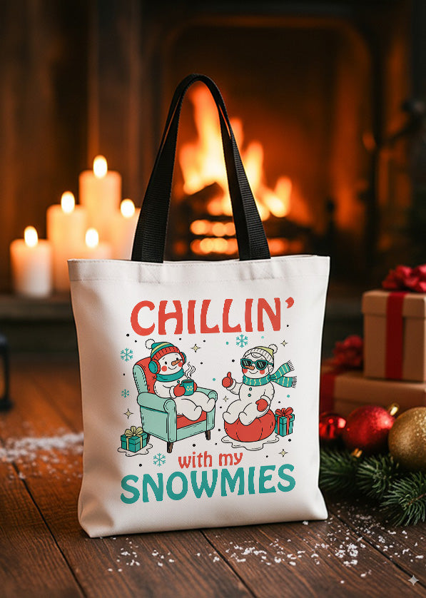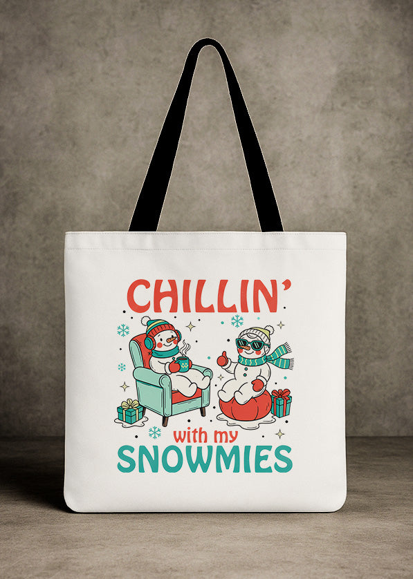 Canvas Totebag Chilllin With My Snowmies Cute Christmas GTT0238