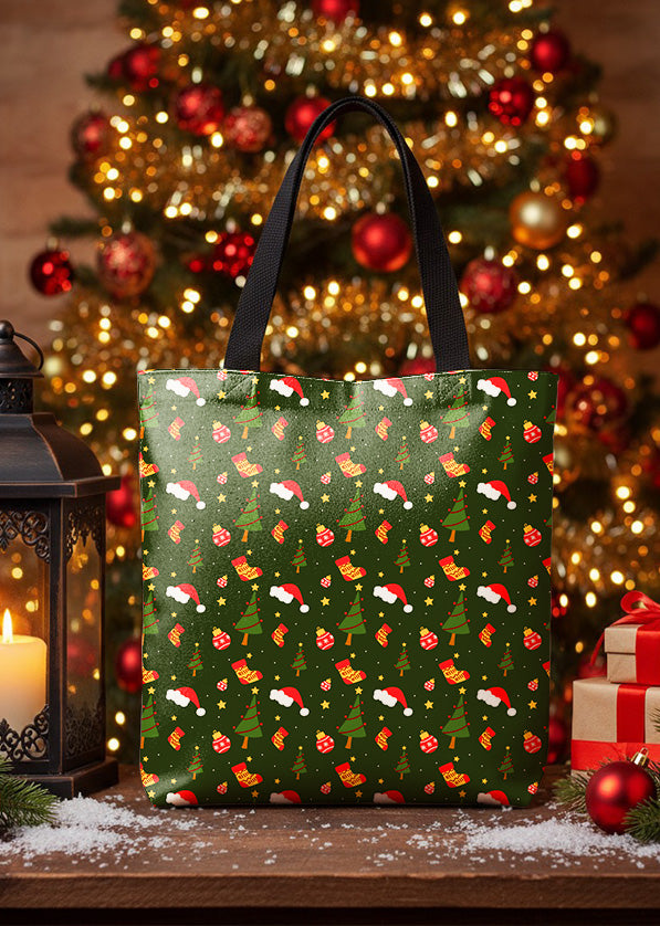 Canvas Totebag Christmas Trees Santa Hats Stockings Cute Christmas GTT0254