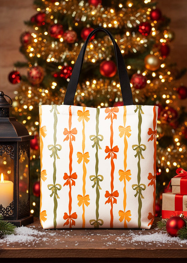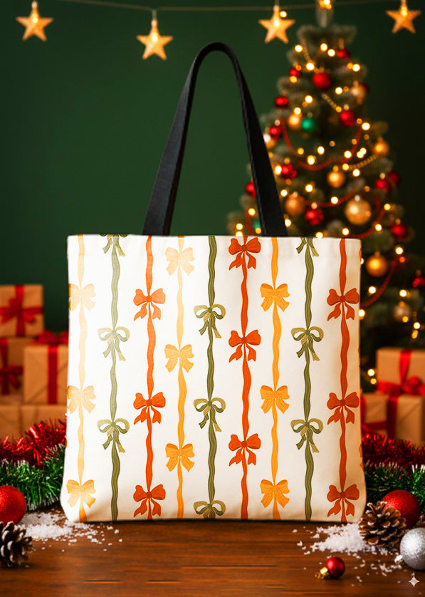 Canvas Totebag Colorful Bow Ribbon Pattern Cute Christmas GTT0293