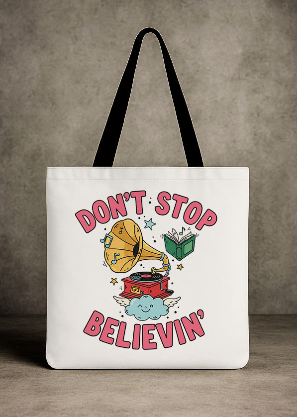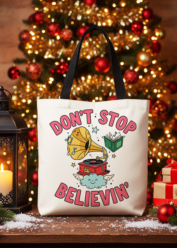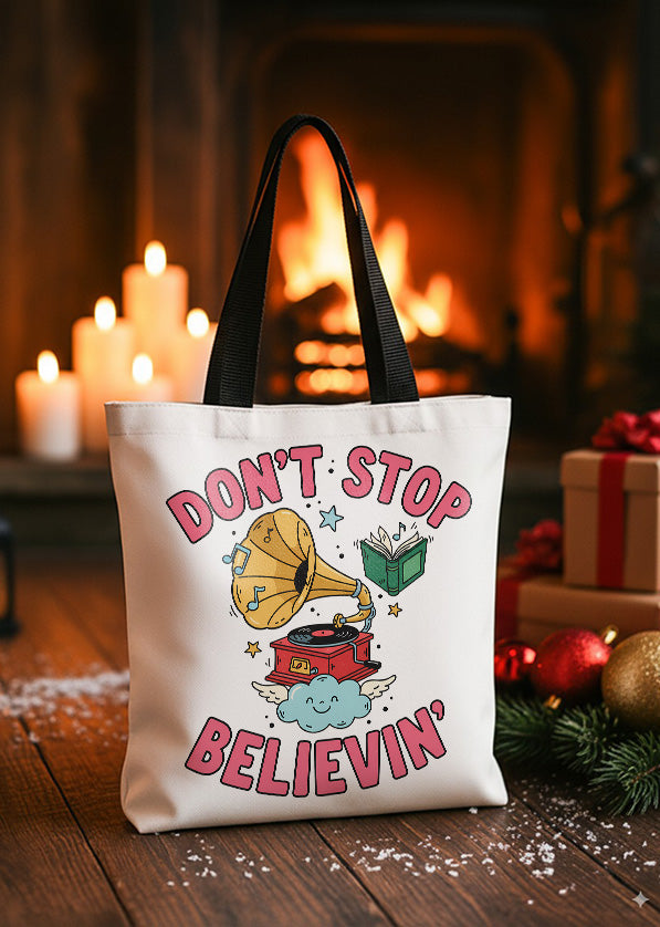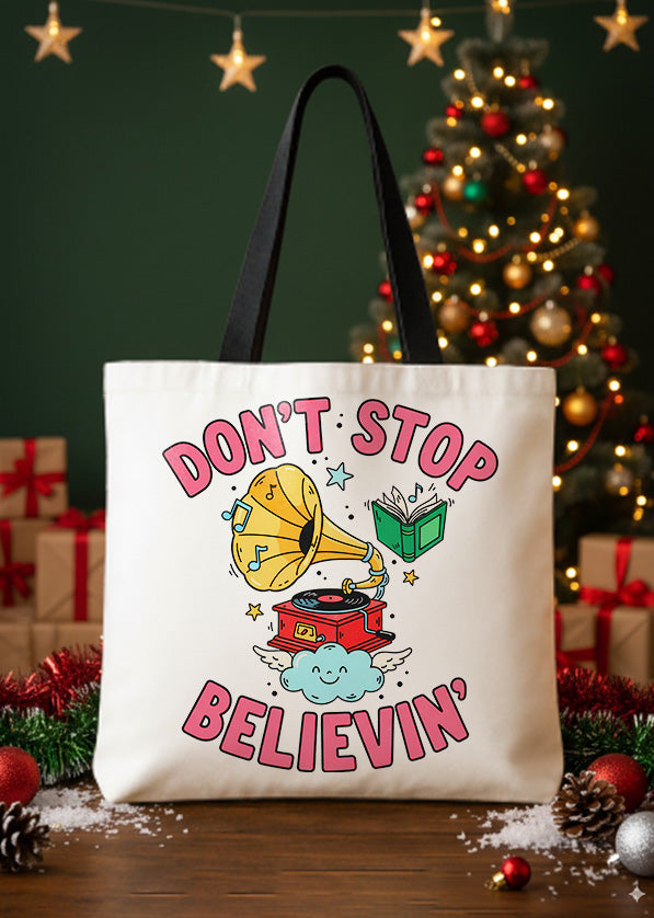 Canvas Totebag Dont Stop Believin Gramophone Book Christmas GTT0275