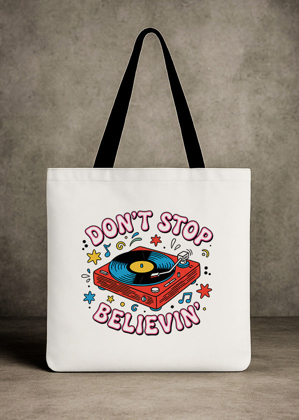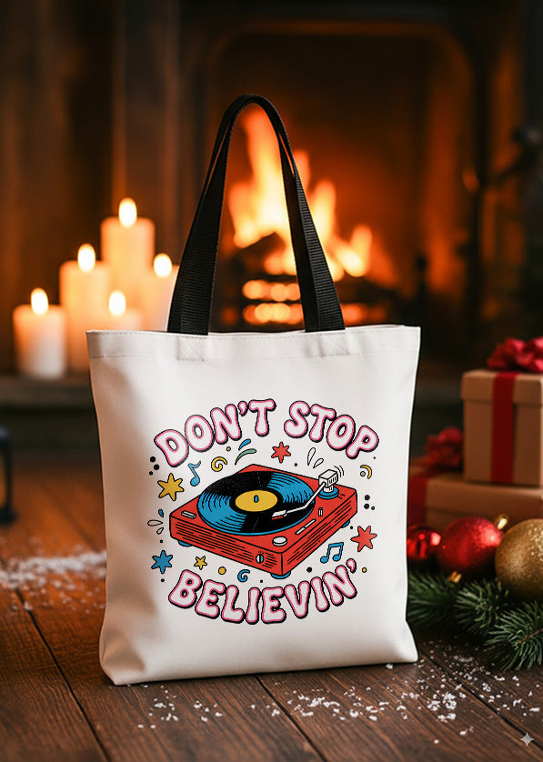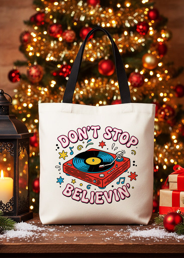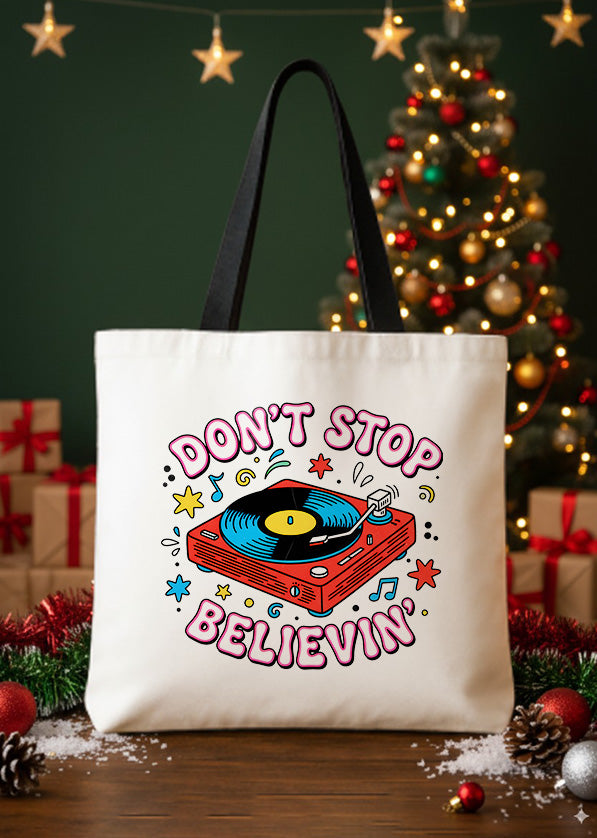Canvas Totebag Dont Stop Believin Record Player Christmas GTT0276