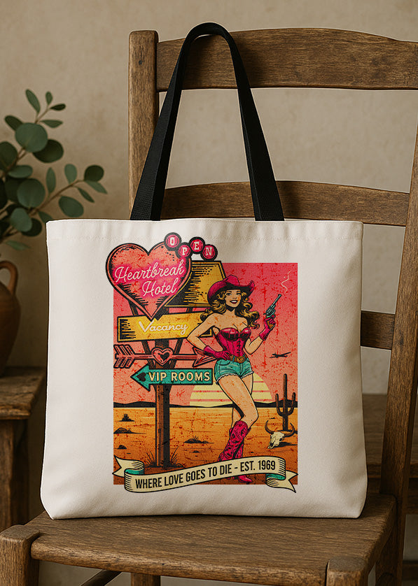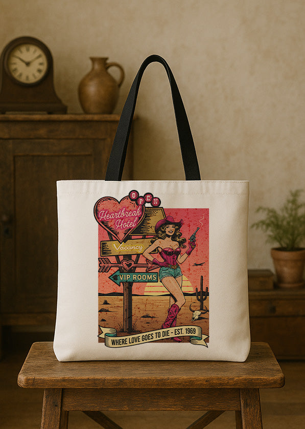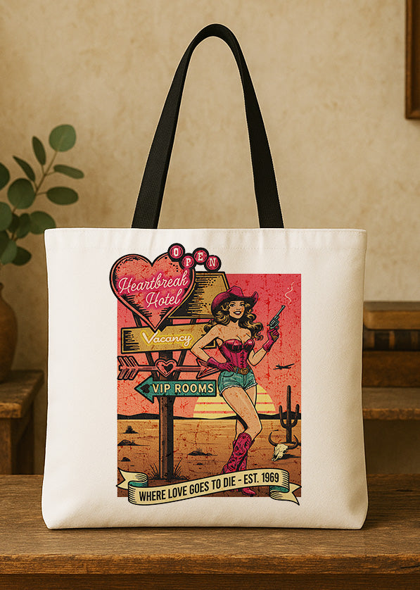 Canvas Totebag Heartbreak Hotel Vacancy VIP Rooms Where Love Goes To Die – Est. 1969 GTT0308