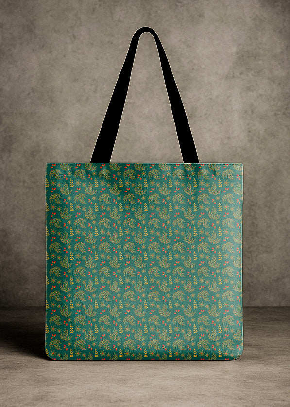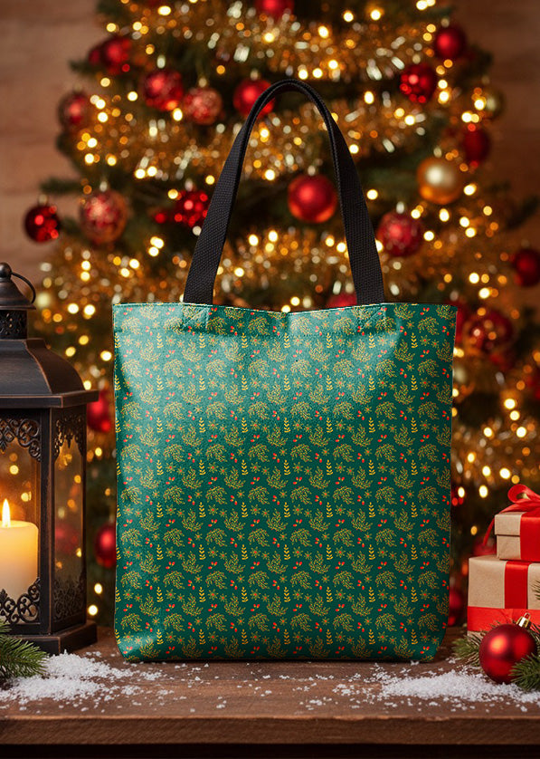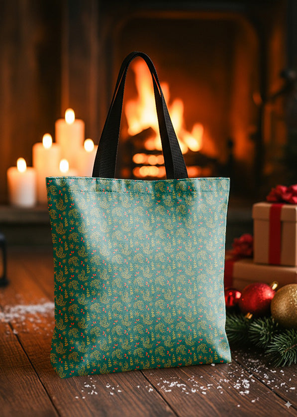 Canvas Totebag Gold Leaves Red Berries Green Cute Christmas GTT0257