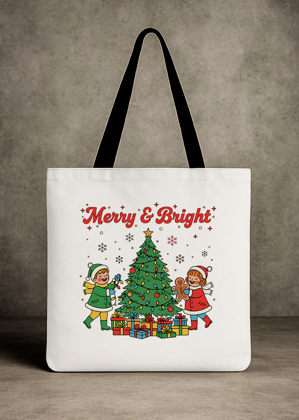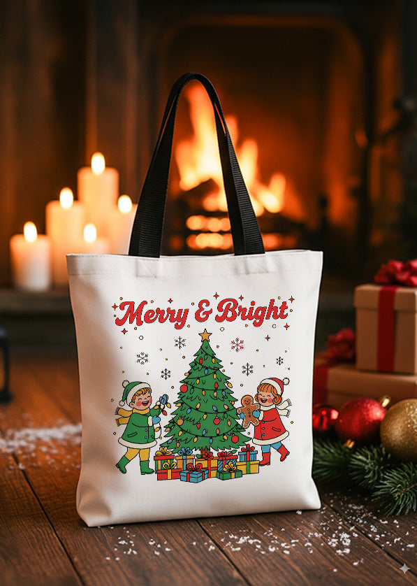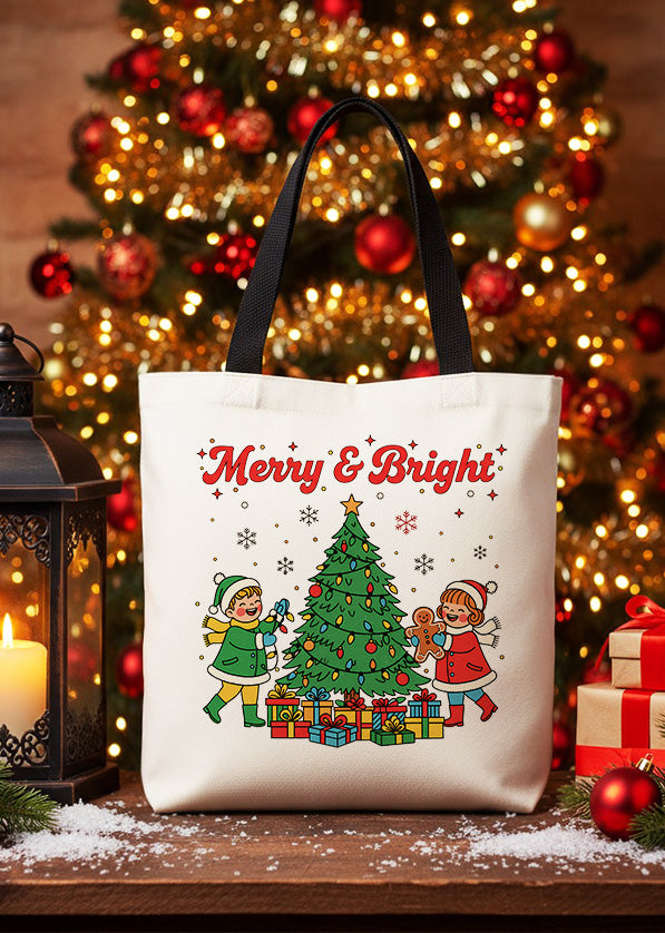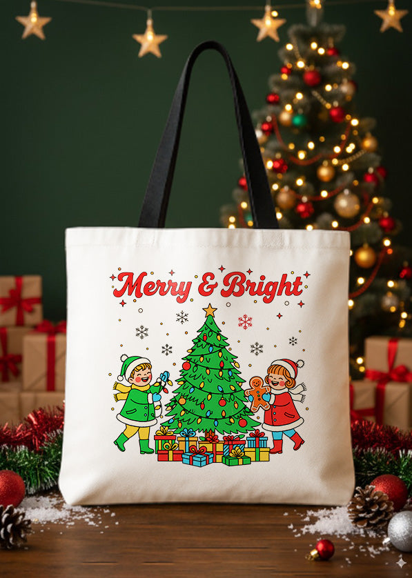 Canvas Totebag Merry And Bright Christmas Kids Tree Cute Christmas GTT0240
