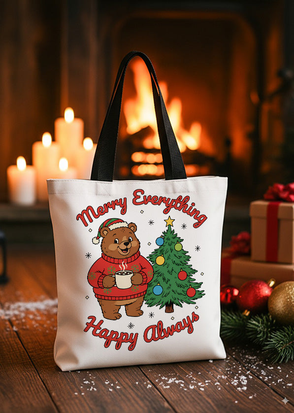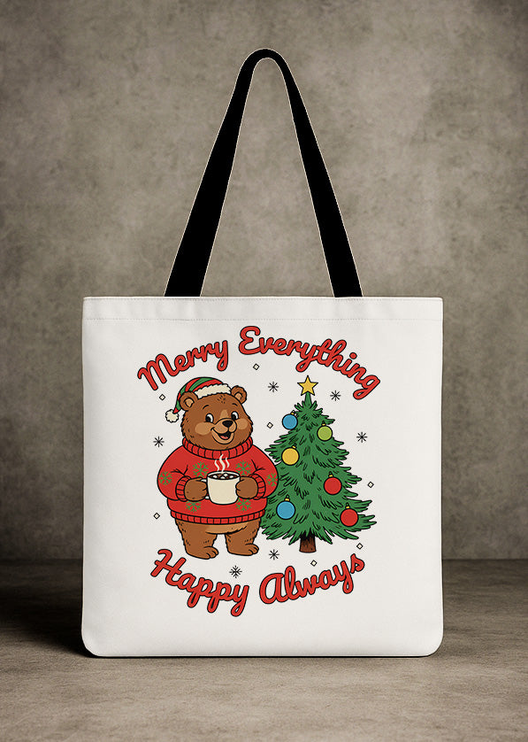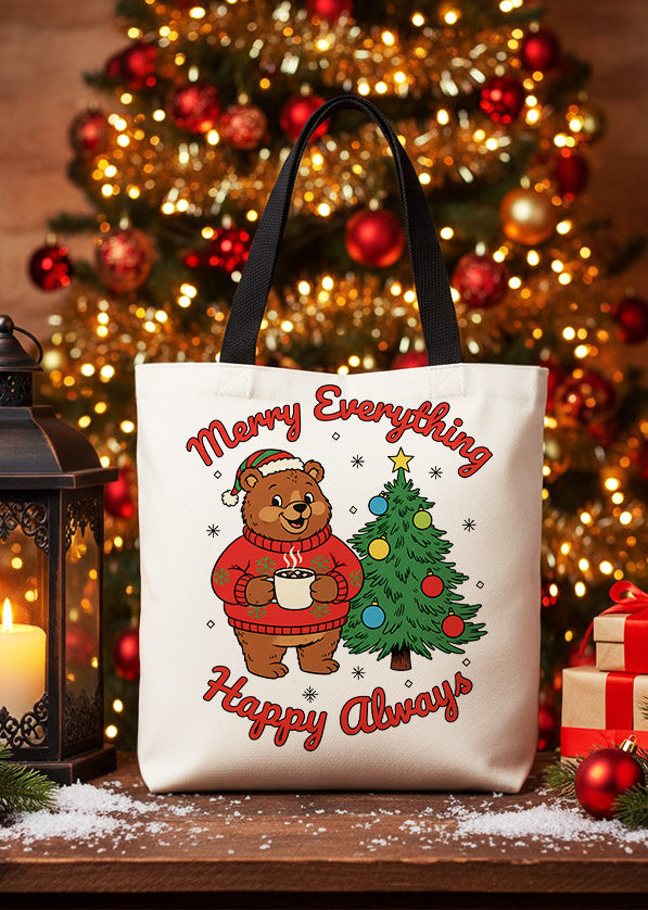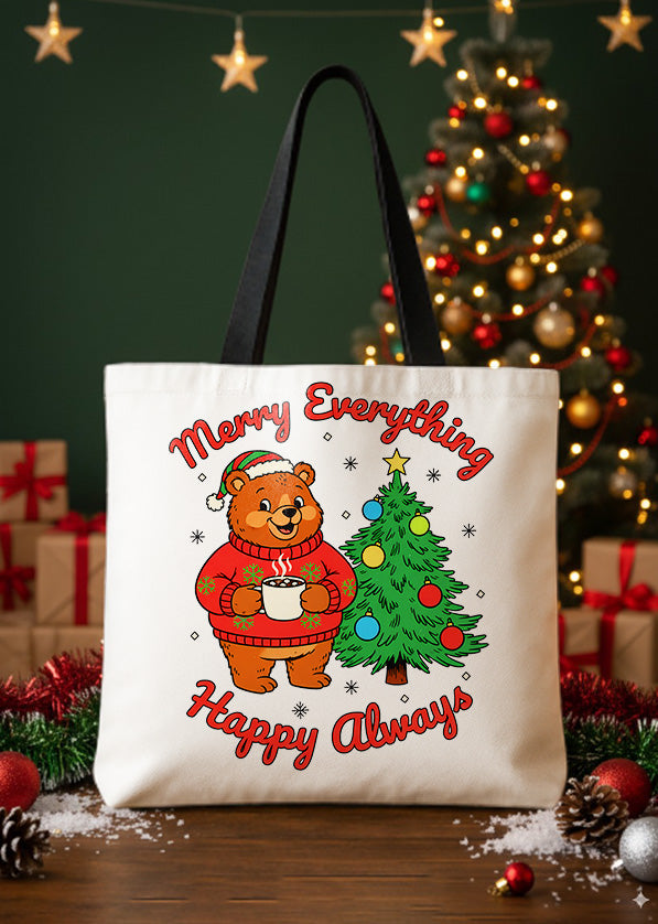 Canvas Totebag Merry Everything Happy Always Bear Christmas Tree Cute Christmas GTT0243