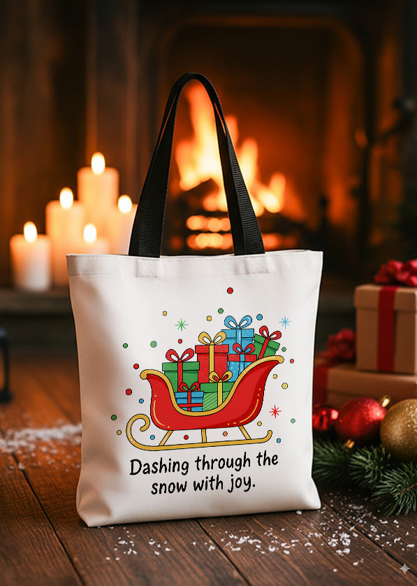 Canvas Totebag Dashing Through The Snow With Joy GTT0352