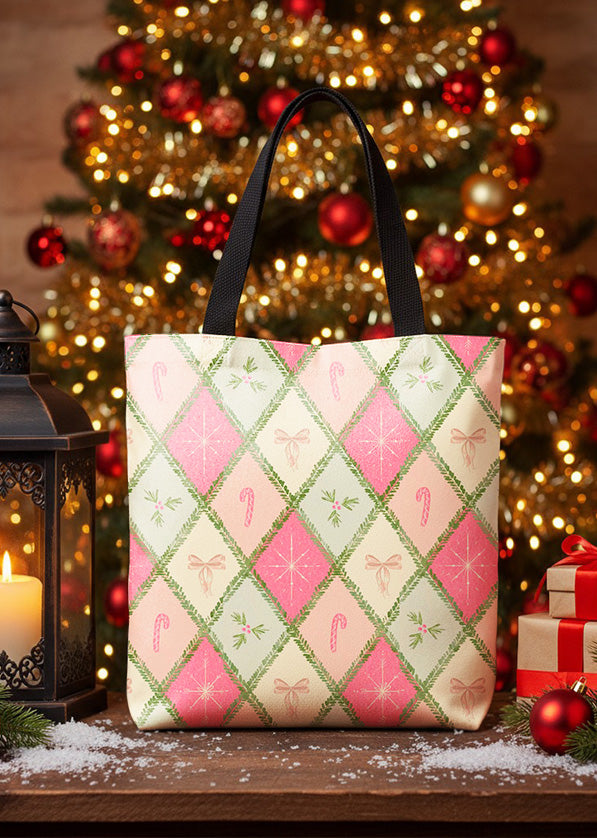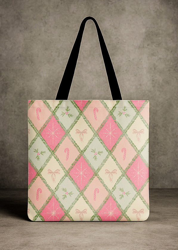 Canvas Totebag Pink Pastel Candy Bow Ribbon Pattern Cute Christmas GTT0295