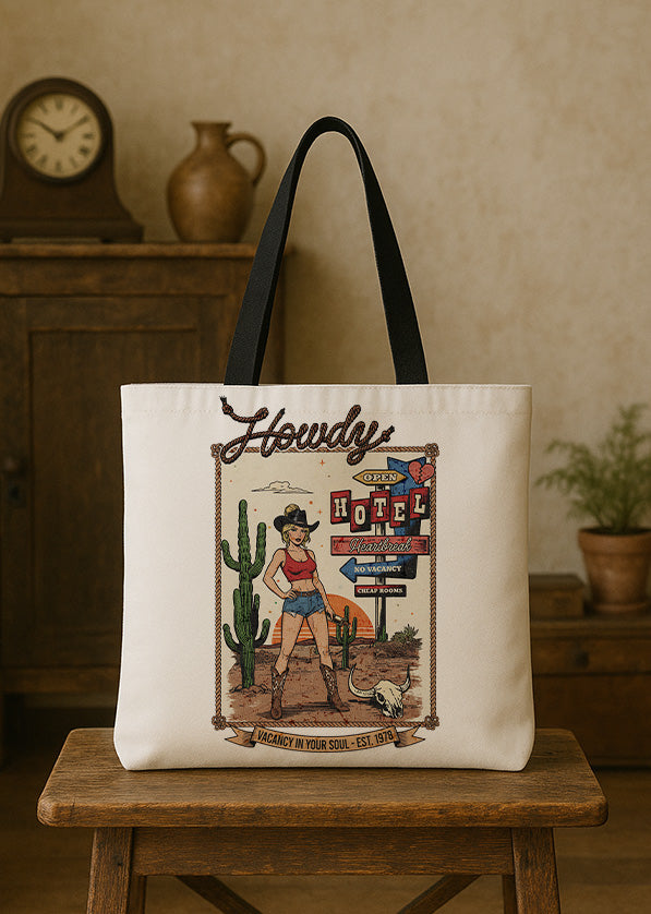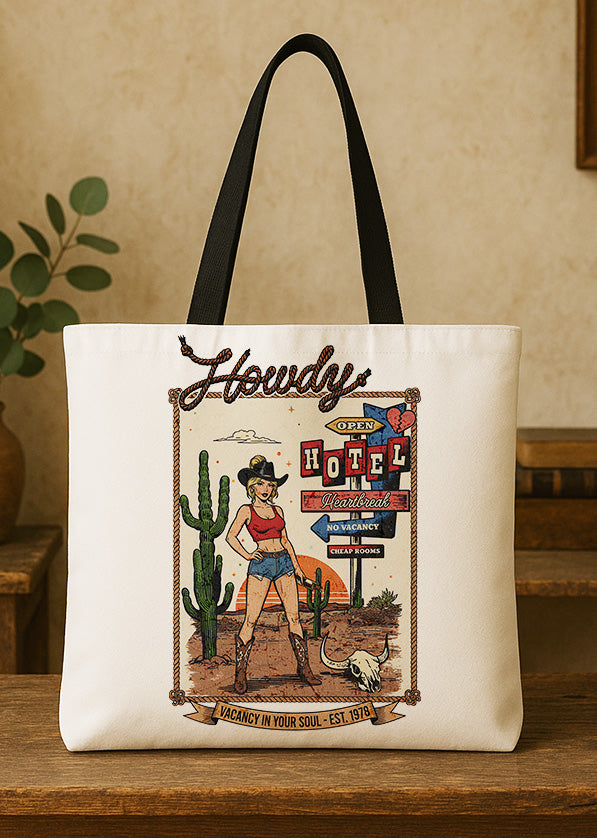 Canvas Totebag Howdy Open Hotel Heartbreak No Vacancy Cheap Rooms Vacancy In Your Soul - Est. 1978 GTT0313