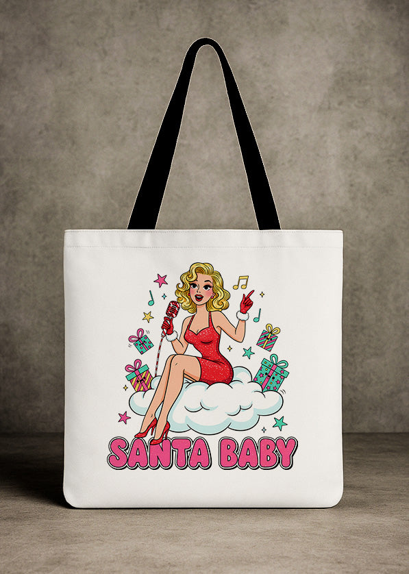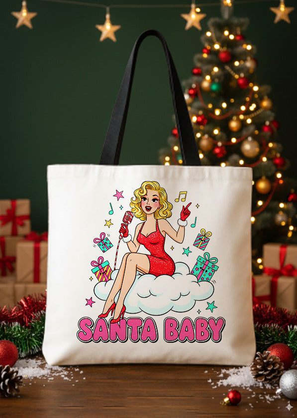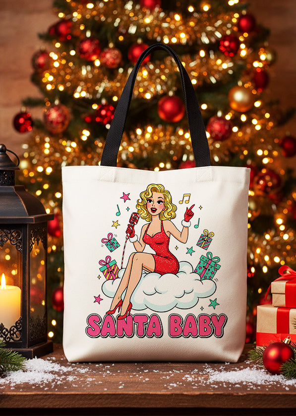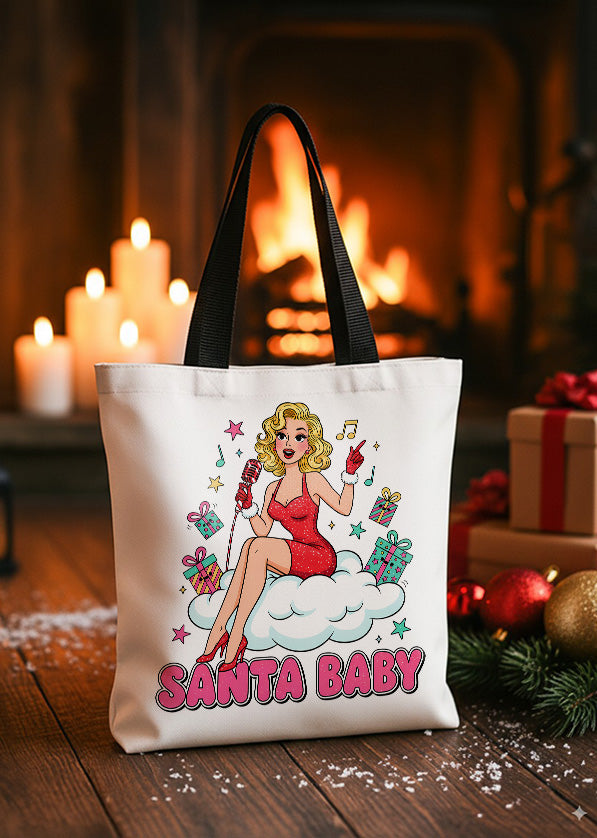Canvas Totebag Santa Baby Girl Singing Christmas GTT0284