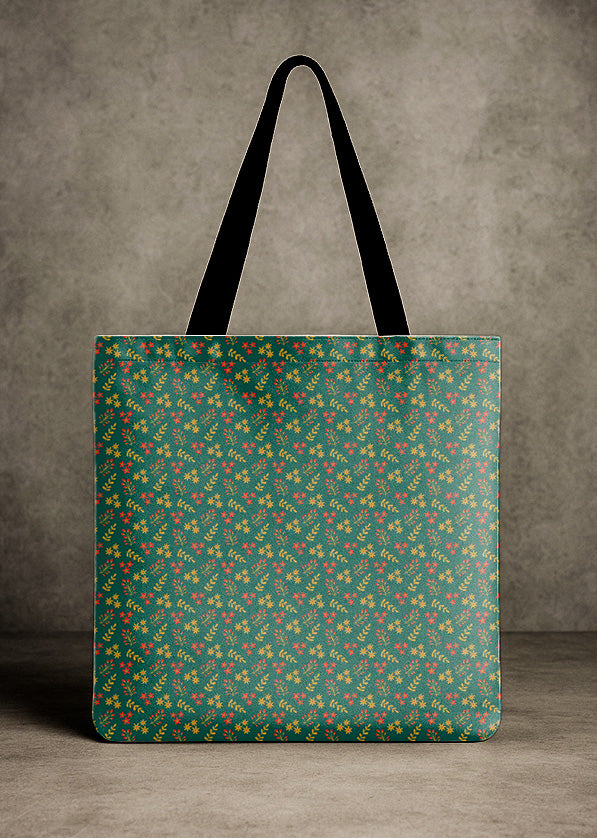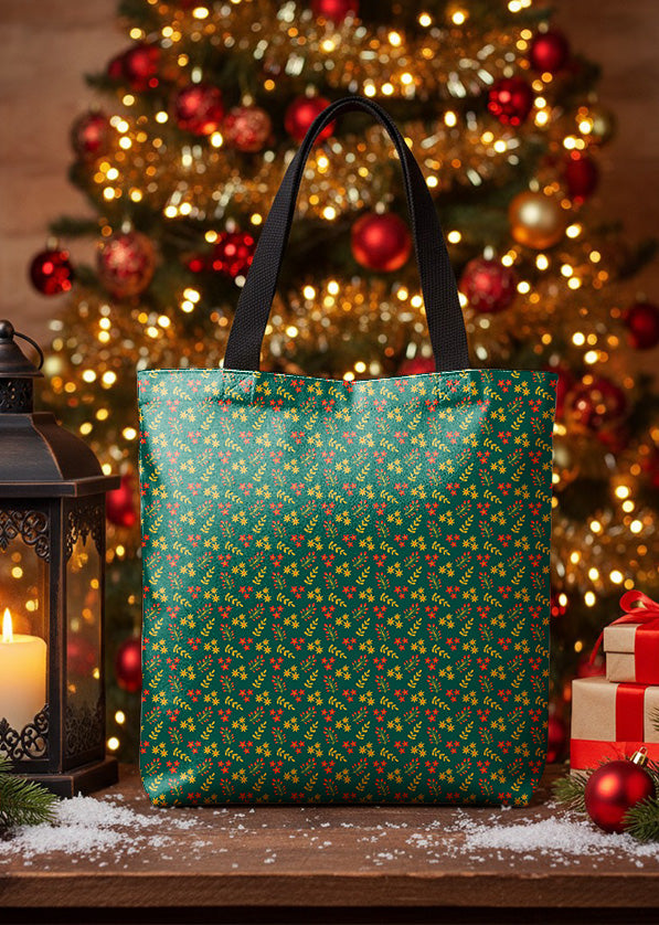 Canvas Totebag Small Flowers Green Background Cute Christmas GTT0262