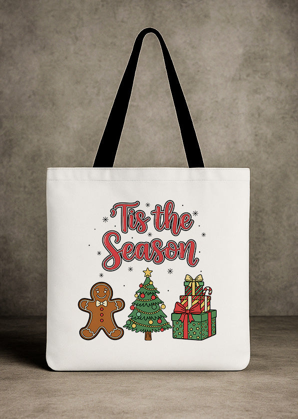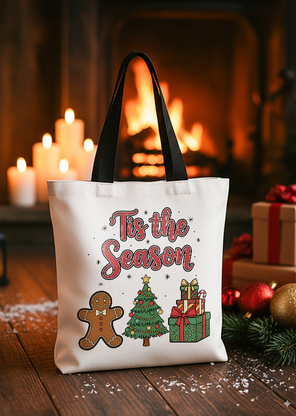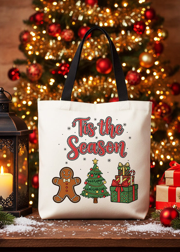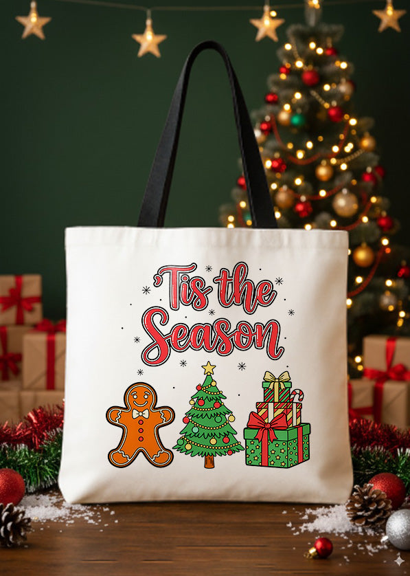 Canvas Totebag Tis The Season Gingerbread Christmas Tree Gifts GTT0288