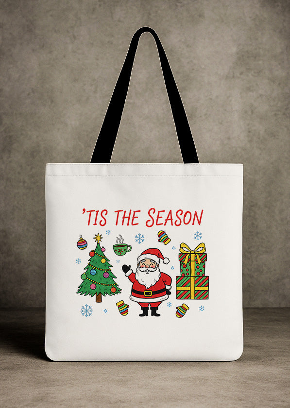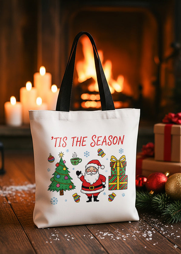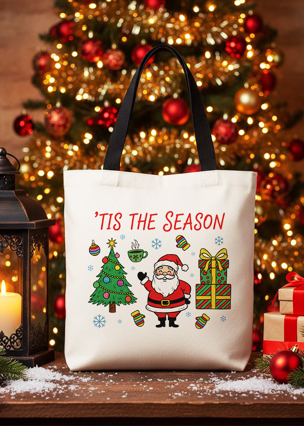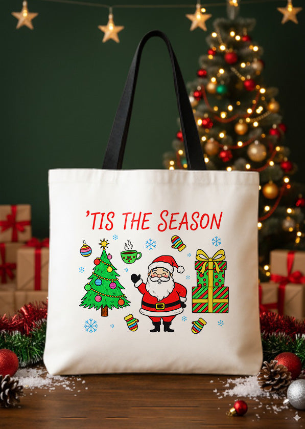Canvas Totebag Tis The Season Santa Christmas Tree GTT0290