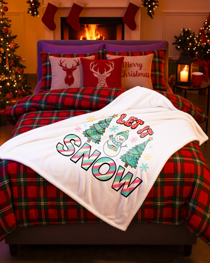 Blanket Let It Snow Snowman Christmas Trees Happy Christmas GBL0140