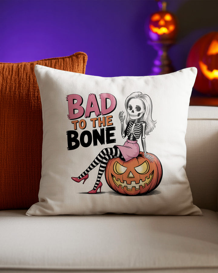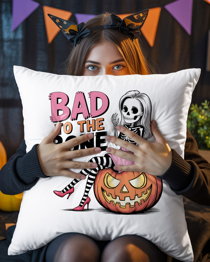 Pillow Cushion Bad To The Bone Sexy Skeleton Pumpkin Cute Halloween GPL02