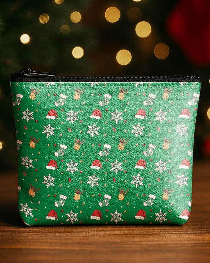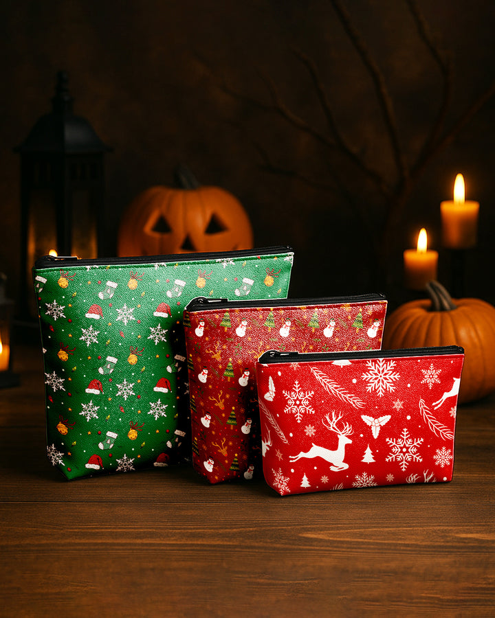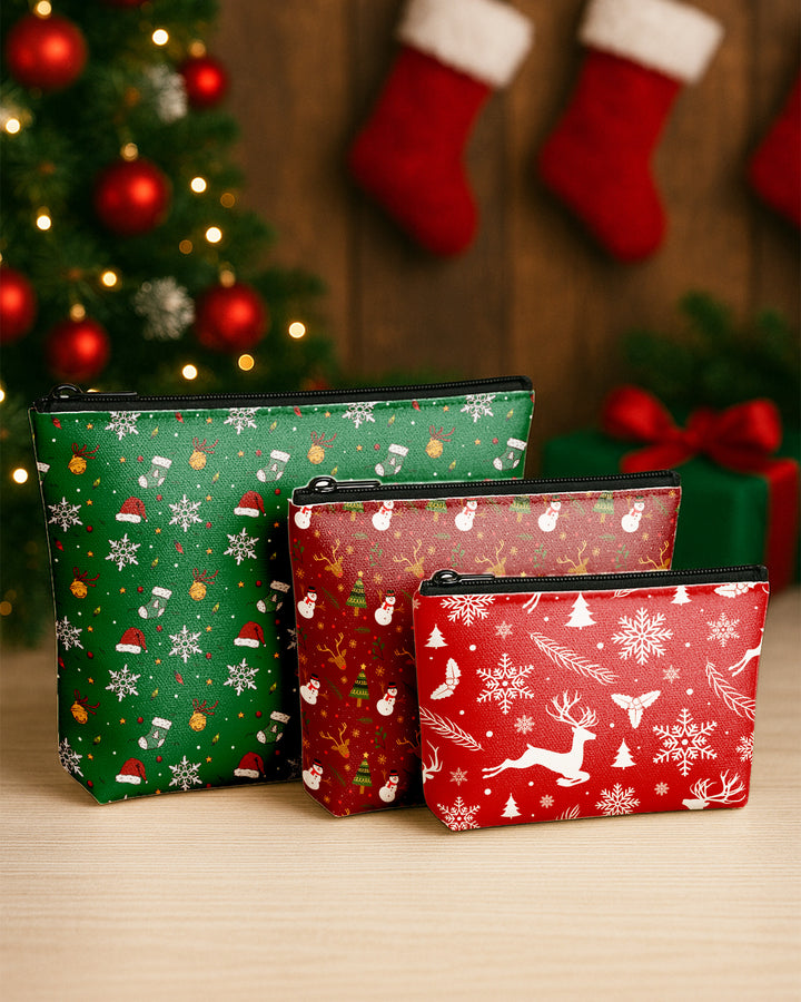 Set of 3 - Essential Zipper Pouch for Makeup Bag Christmas Reindeer Snowman Pattern - Christmas Pattern Green - Red Xmas Cute Christmas GPO0185