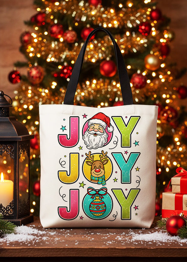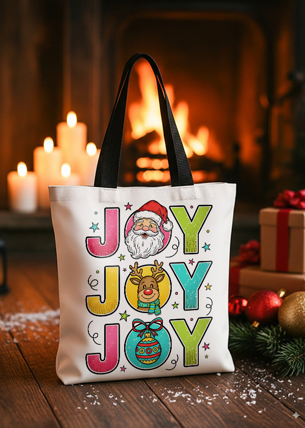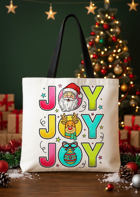 Canvas Totebag Joy Santa Reindeer Ornament Christmas GTT0280