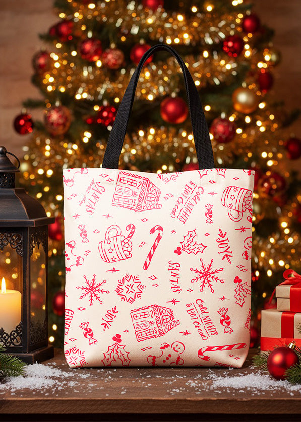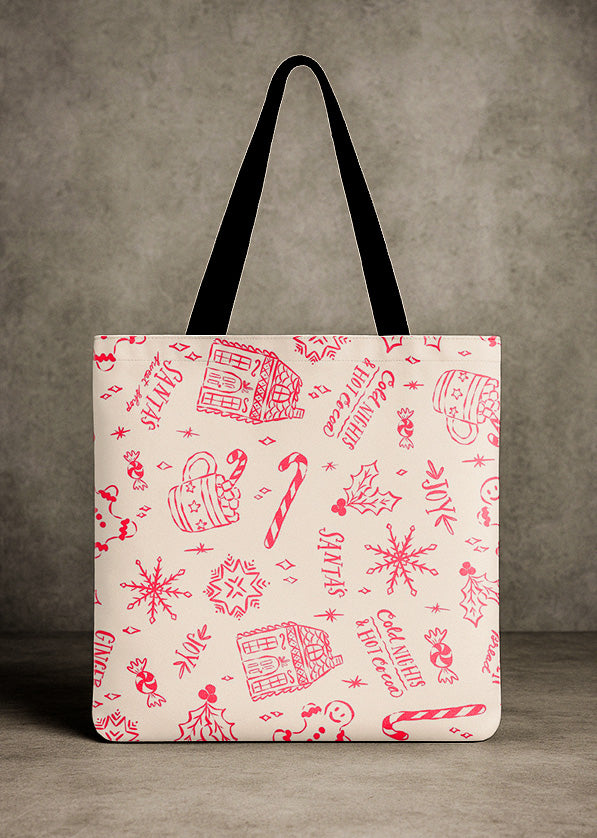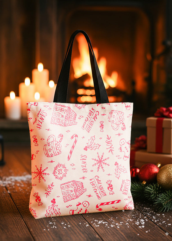 Canvas Totebag Ginger Candy and House Xmas Pink Pattern Cute Christmas GTT0294