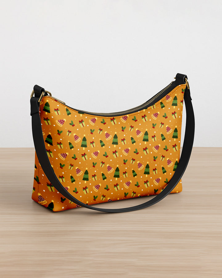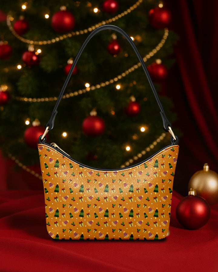 Leather Baguette Bag Underarm Shoulder Bag Beanie Wool Hat Christmas Tree GSD02