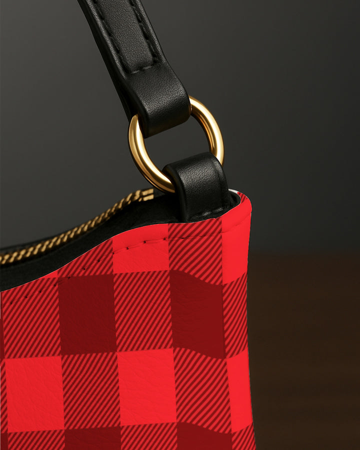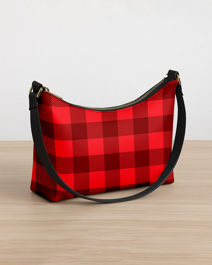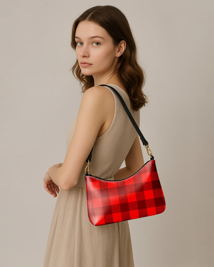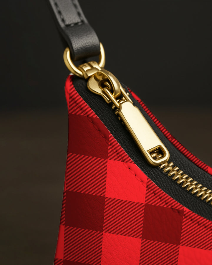 Leather Baguette Bag Underarm Shoulder Bag Black Red Plaid Pattern GSD03