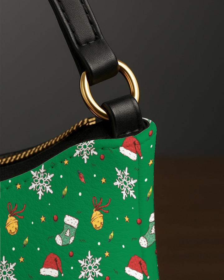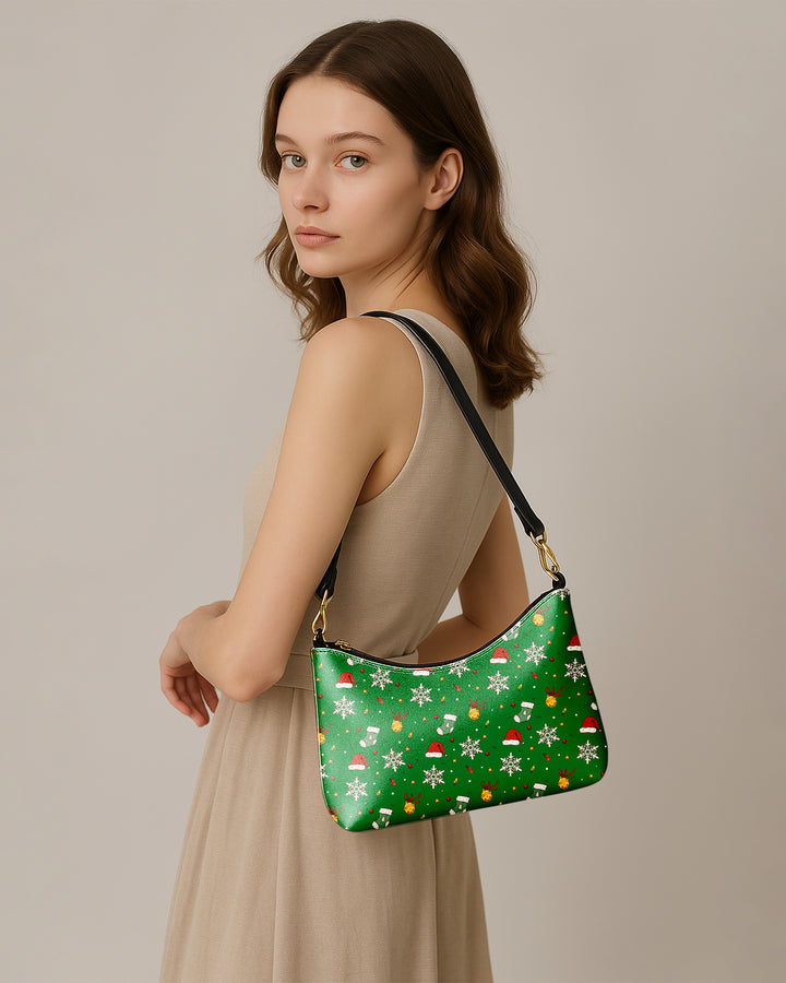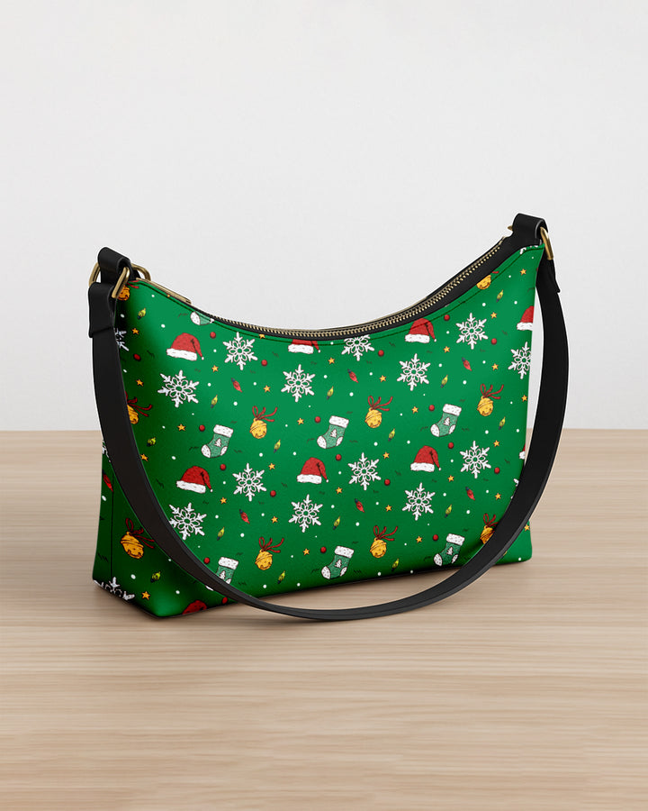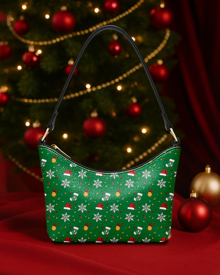 Leather Baguette Bag Underarm Shoulder Bag Christmas Stocking Socks Hat and Bell 02 GSD08