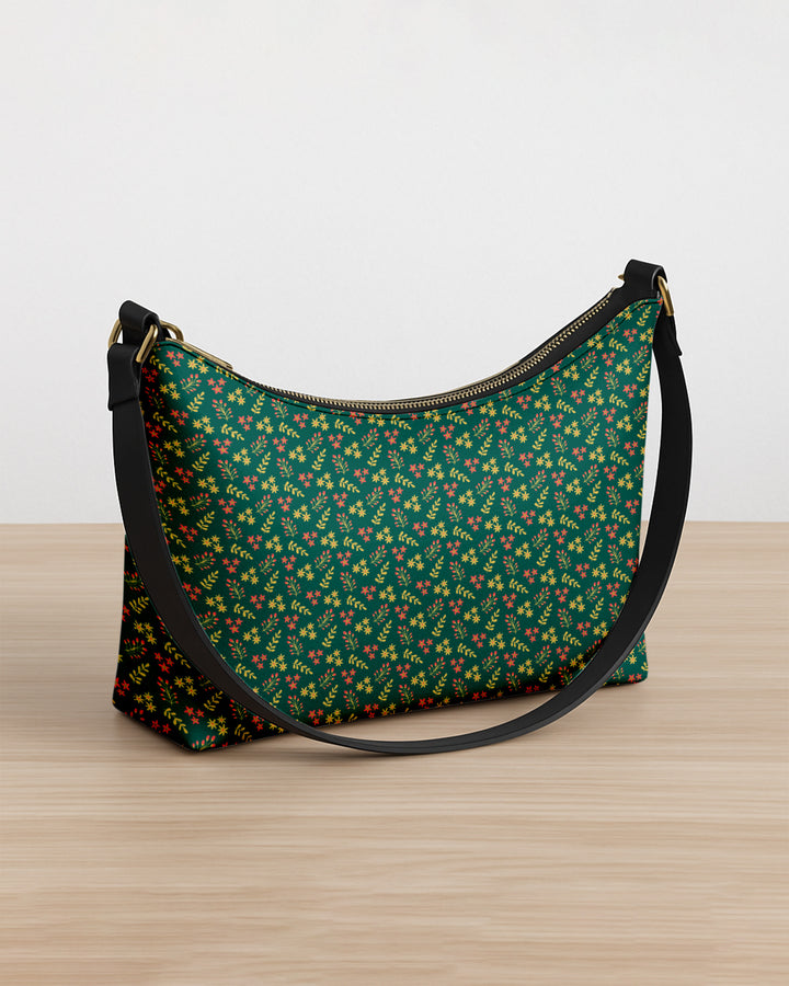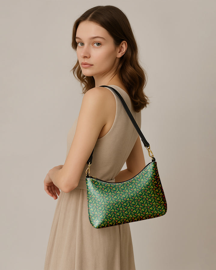 Leather Baguette Bag Underarm Shoulder Bag Ditzy Floral Flower 01 GSD010
