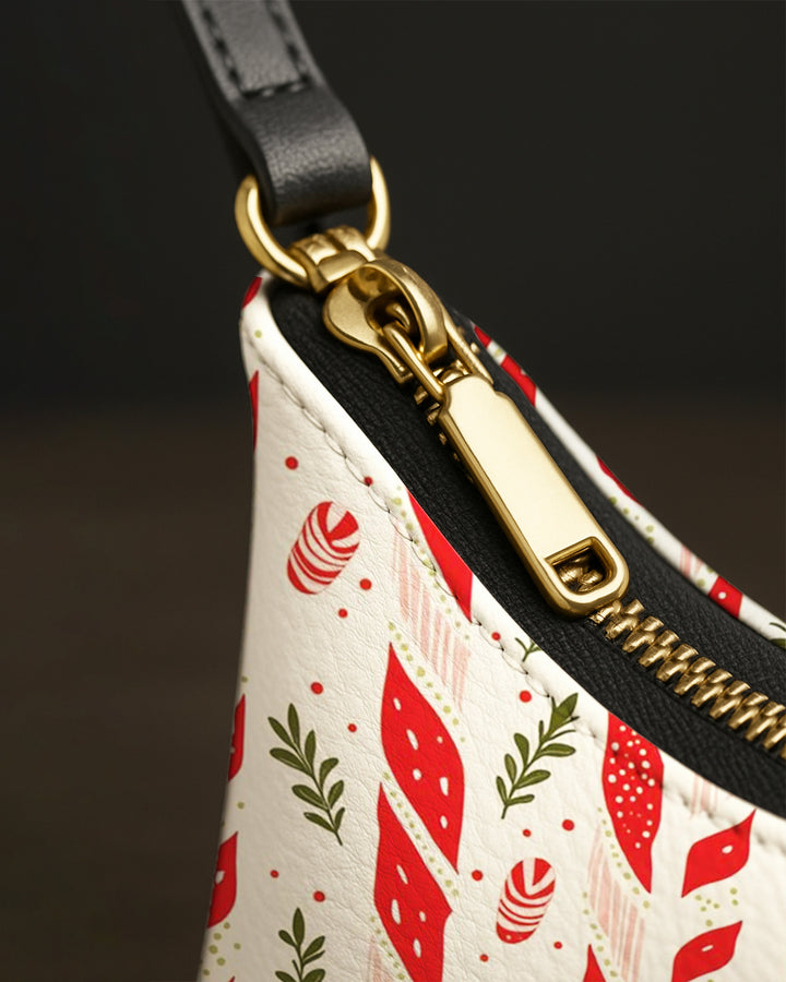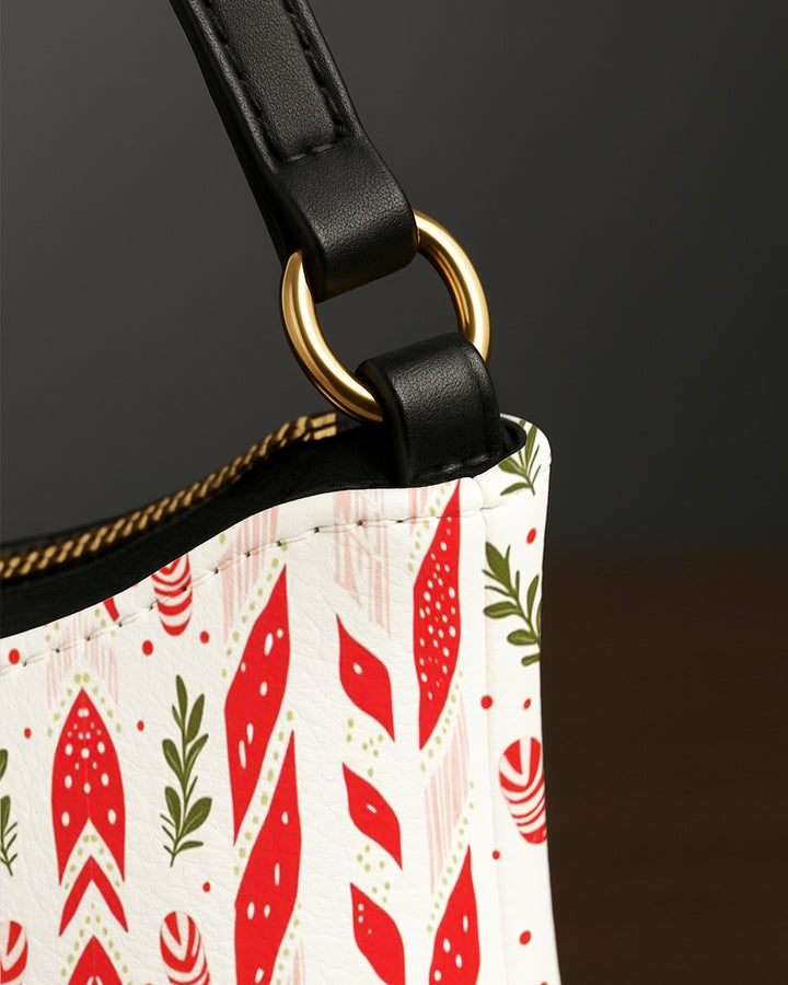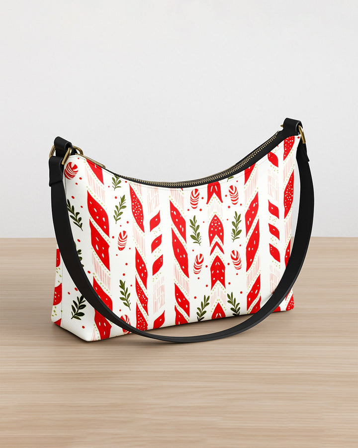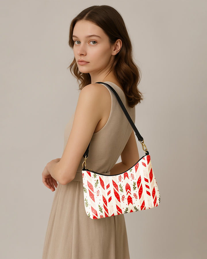 Leather Baguette Bag Underarm Shoulder Bag Red Xmas Pattern GSD030