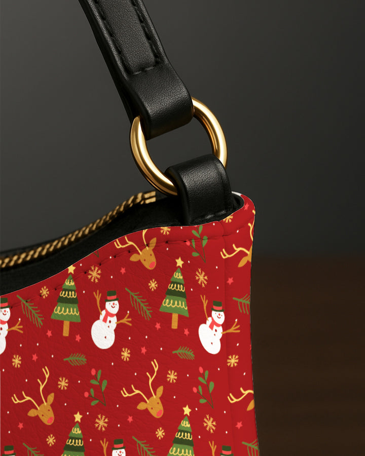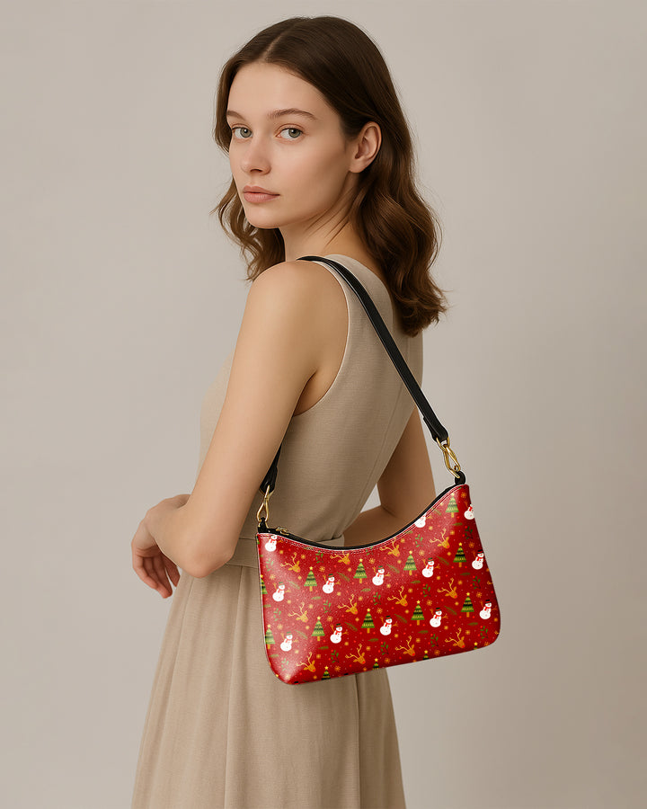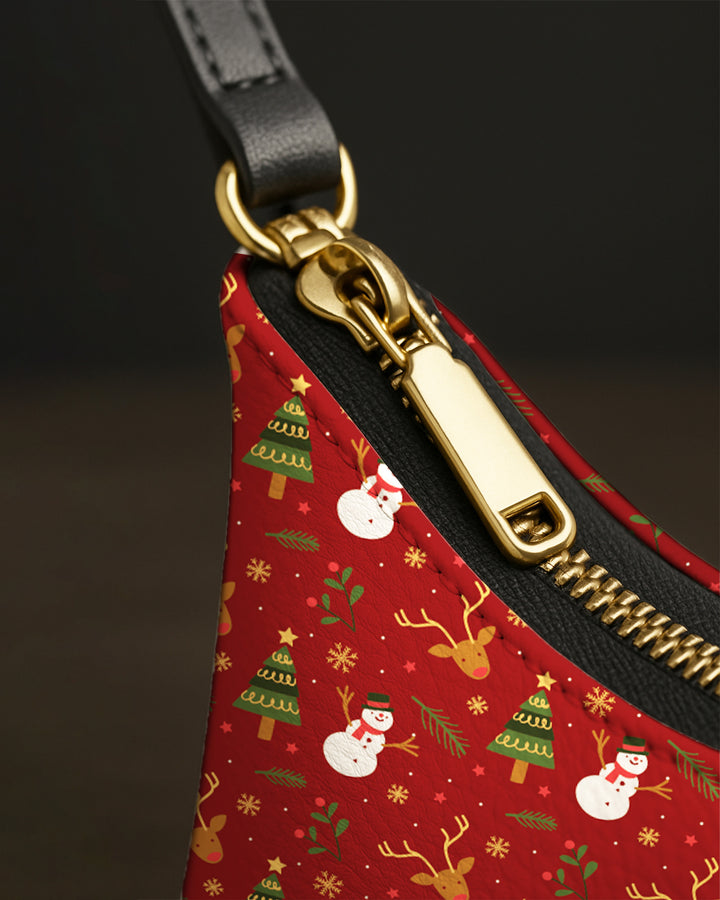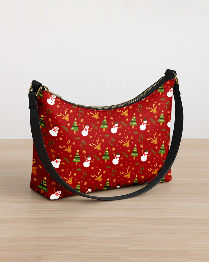 Leather Baguette Bag Underarm Shoulder Bag Snowman and Christmas Tree GSD018