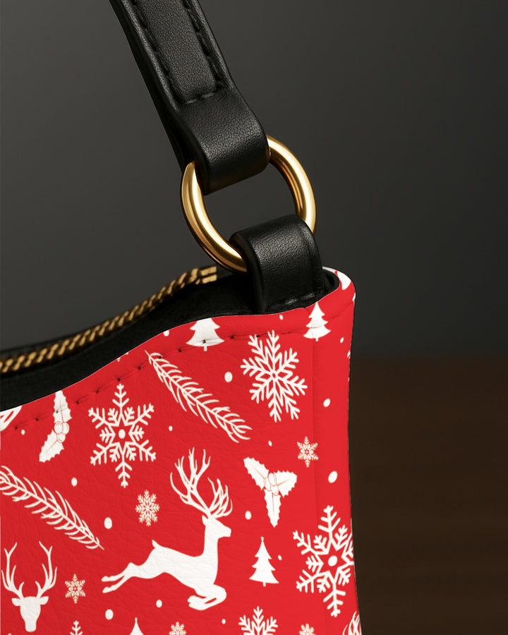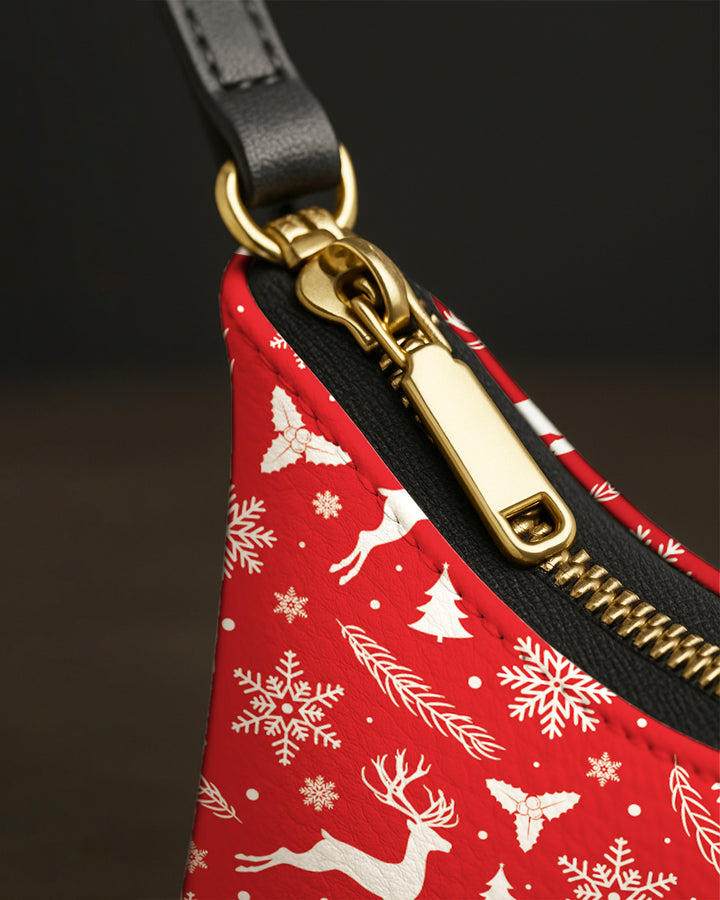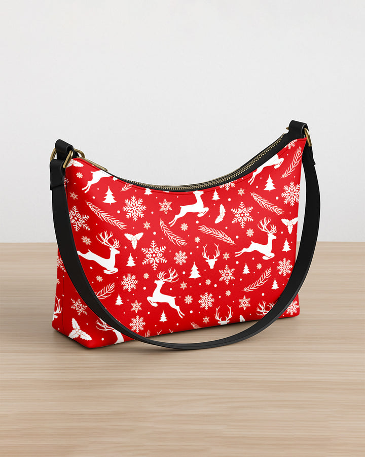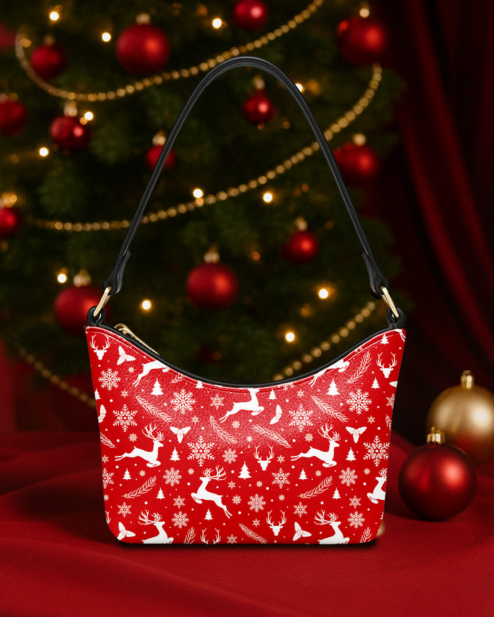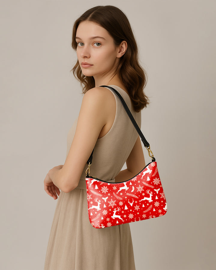 Leather Baguette Bag Underarm Shoulder Bag White Snow and Deer Xmas Red 02 GSD021