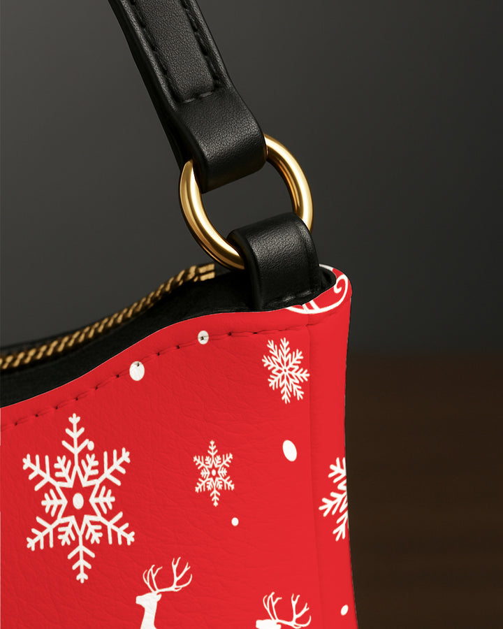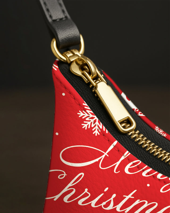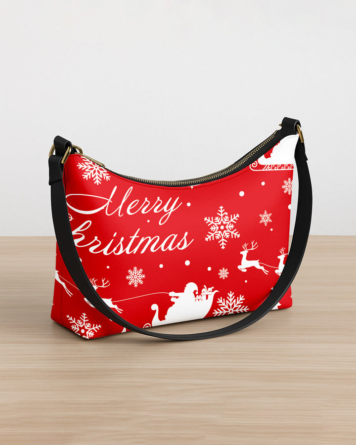 Leather Baguette Bag Underarm Shoulder Bag White Snow and Deer Xmas Santa Claus Red GSD022