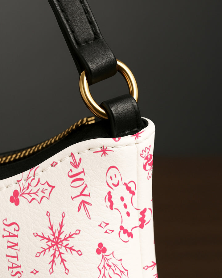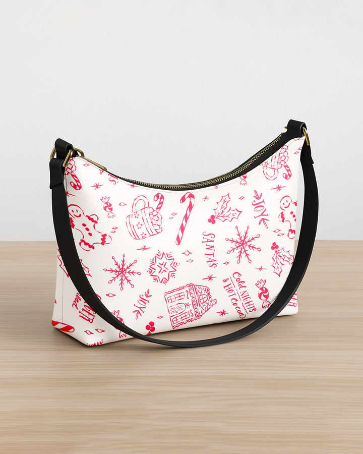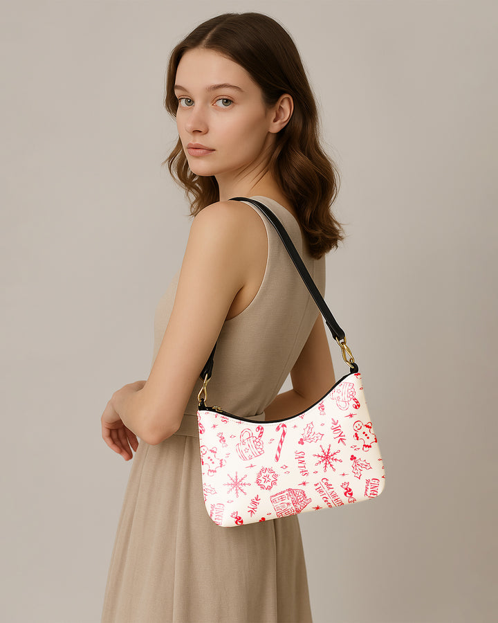 Leather Baguette Bag Underarm Shoulder Bag Xmas Pattern GSD031