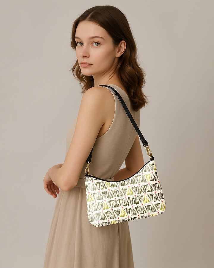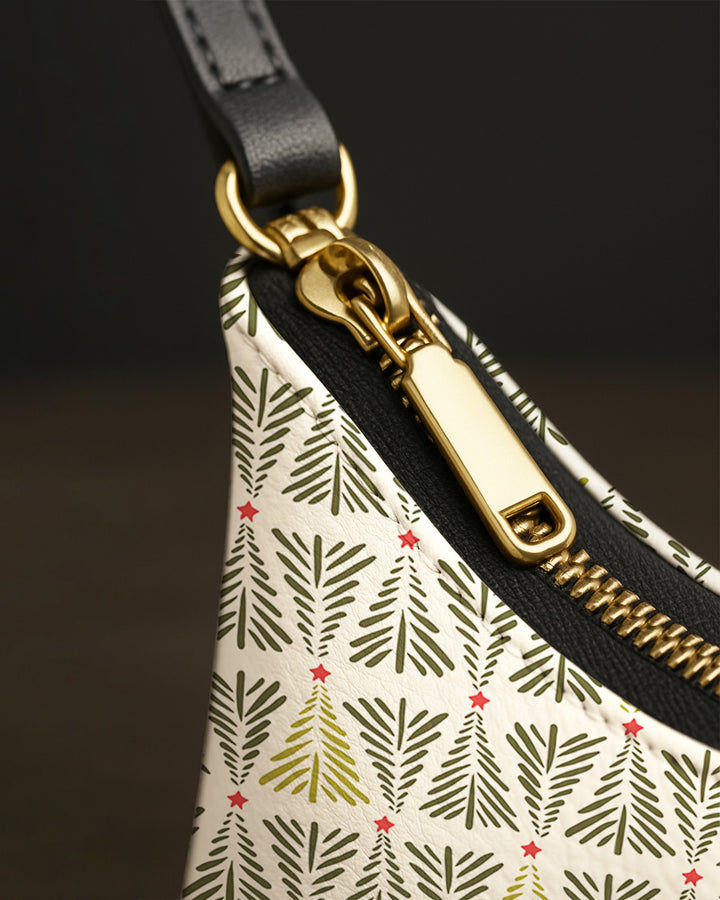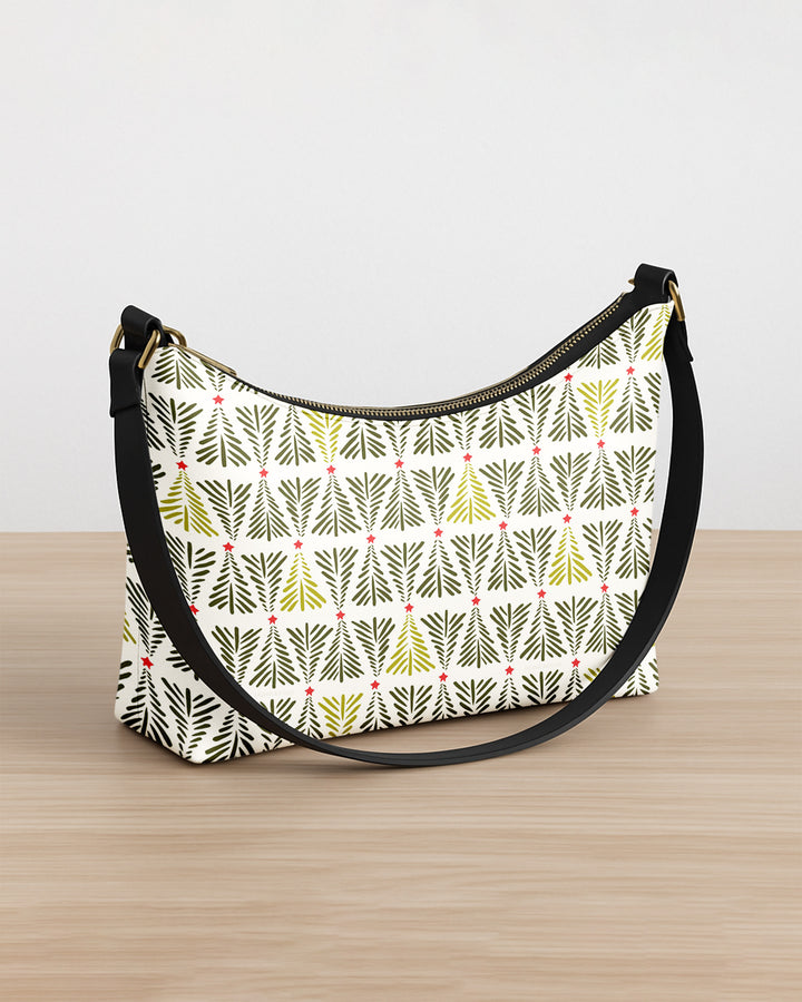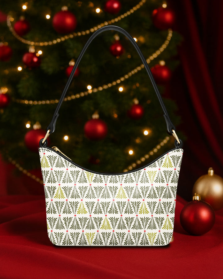 Leather Baguette Bag Underarm Shoulder Bag Xmas Tree Pattern GSD032