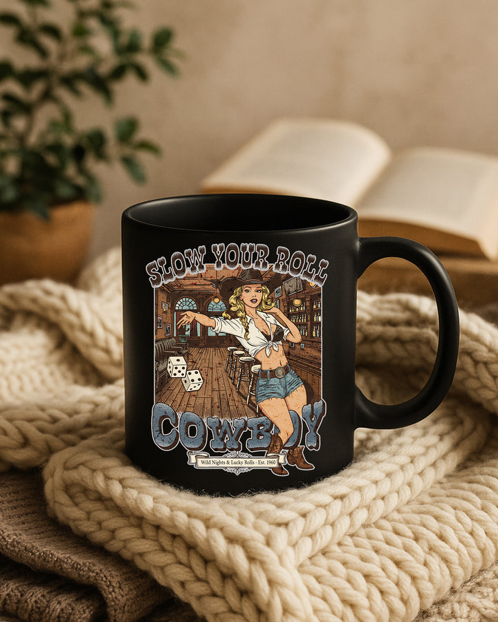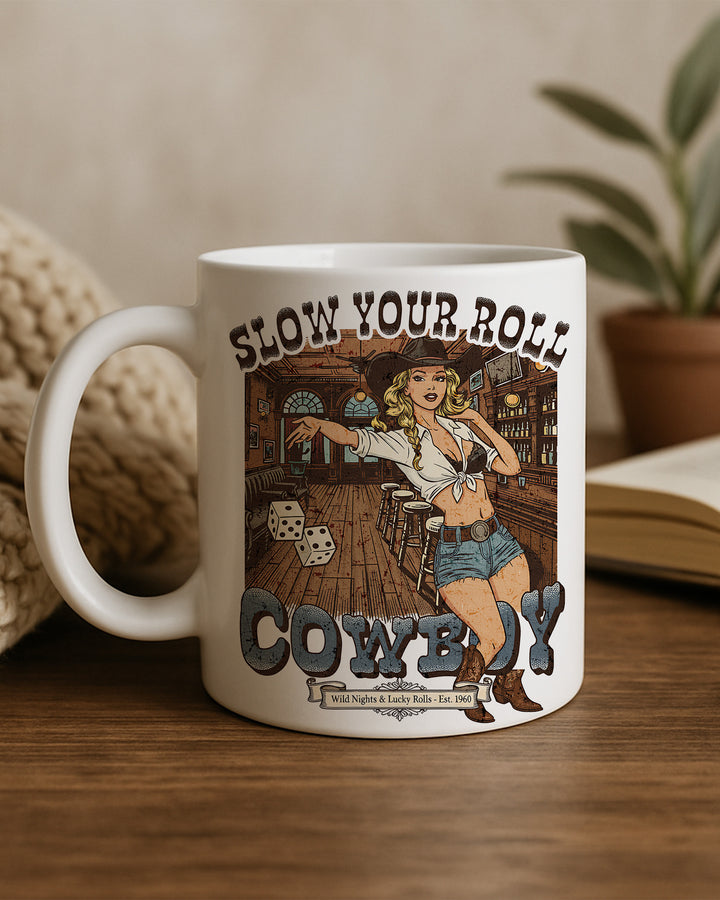 Mug Slow Your Roll Cowboy Wild Nights & Lucky Rolls · Est. 1969 GMG0210