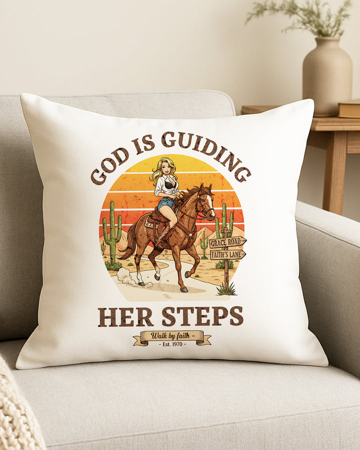 Pillow Cushion Case God Is Guiding Her Steps Walk By Faith - Est.1970 GPL0230