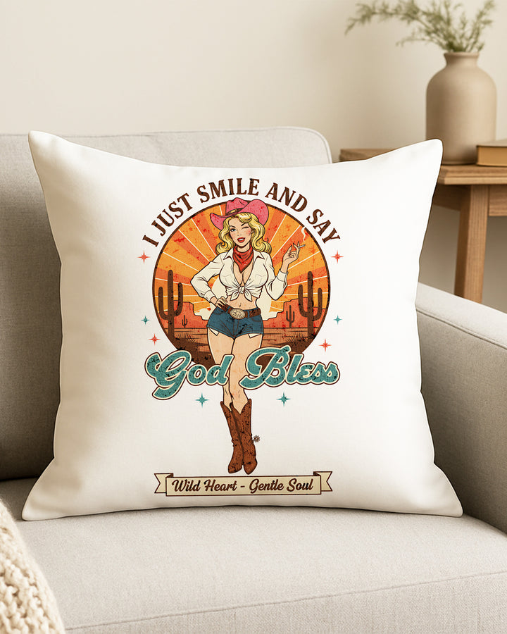 Pillow Cushion Case I Just Smile And Say God Bless Wild Heart - Gentle Soul GPL0246