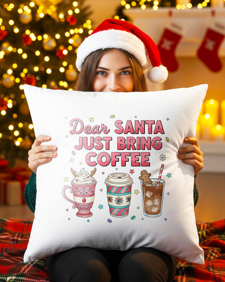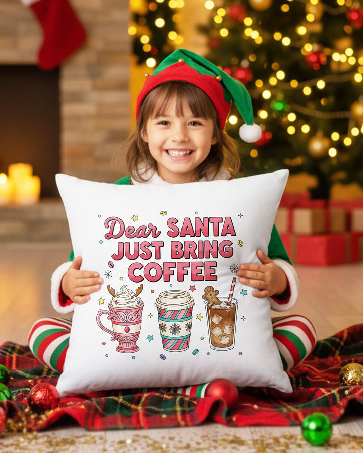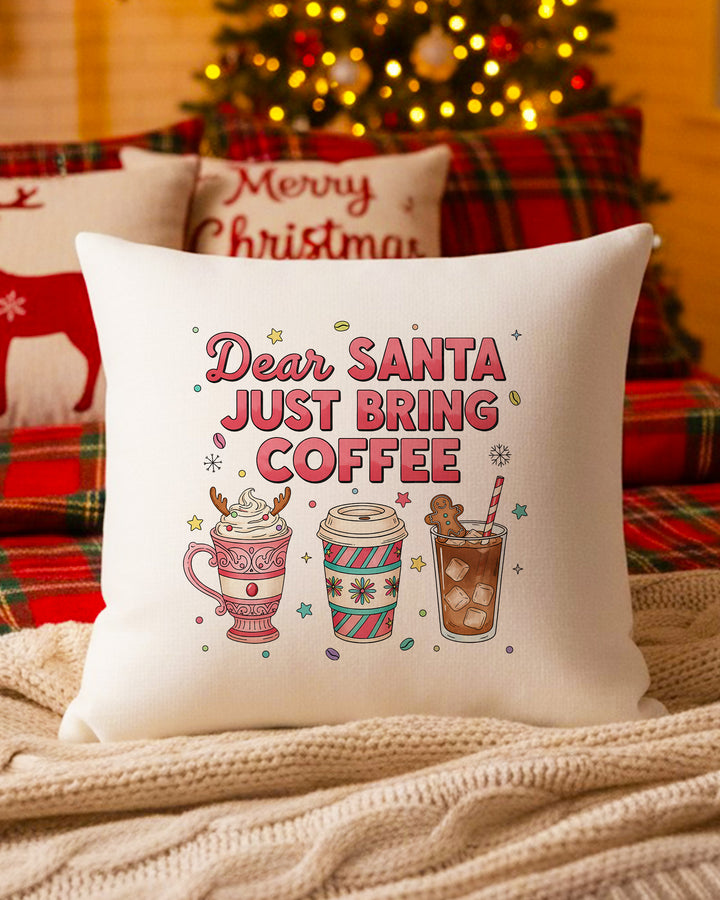 Pillow Cushion Case Dear Santa Just Bring Coffee Cute Christmas GPL0212