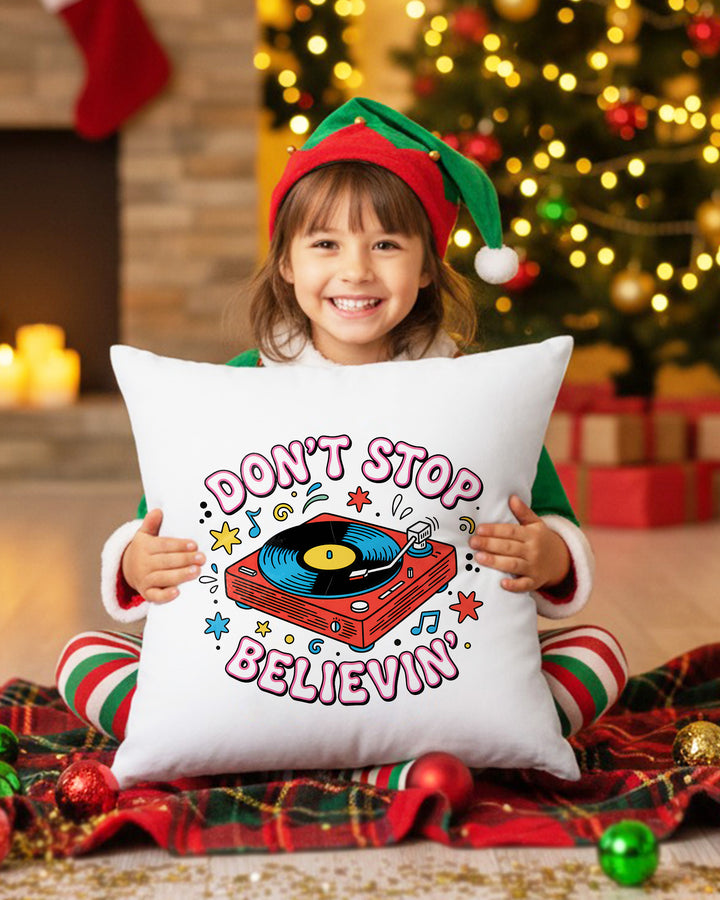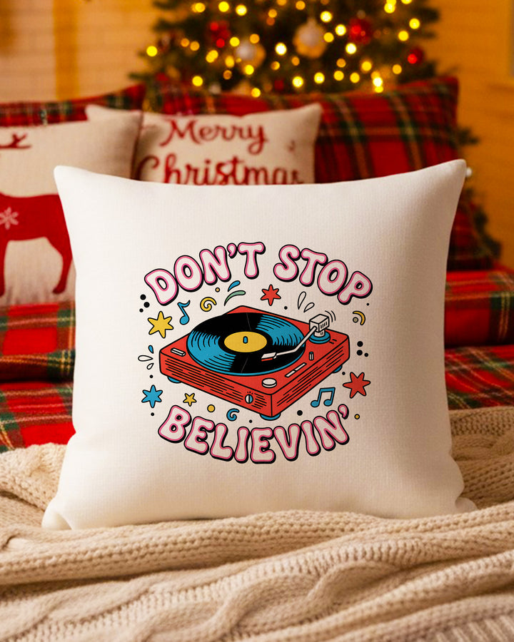 Pillow Cushion Case Dont Stop Believin Record Player Cute Christmas GPL0214