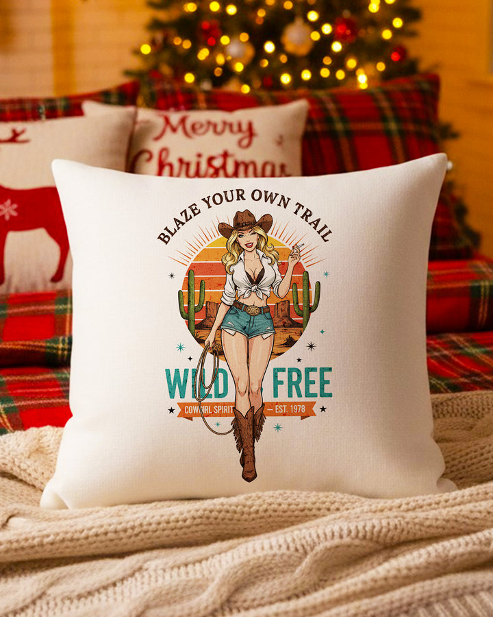 Pillow Cushion Case Blaze Your Own Trail Wild and Free Cowgirl Spirit - Est. 1978 GPL0233