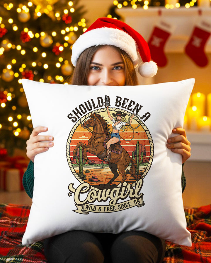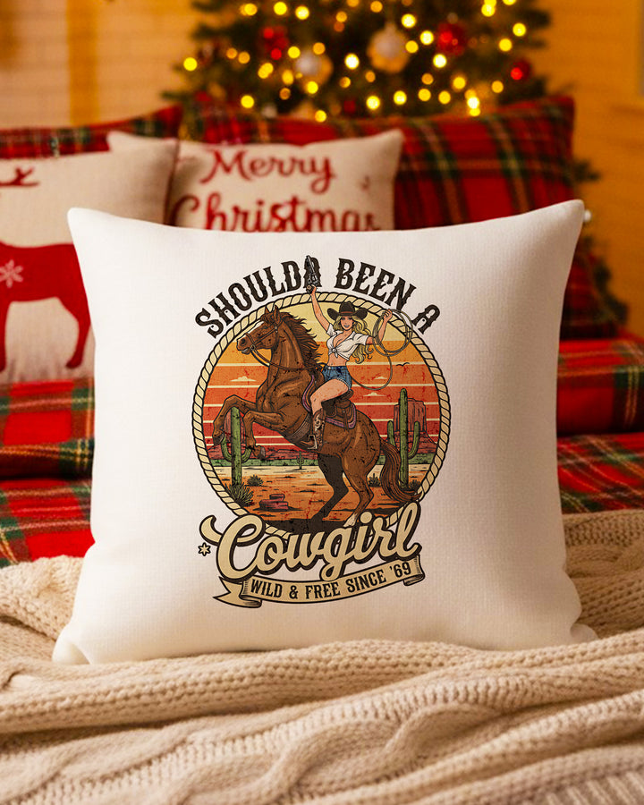 Pillow Cushion Case Shoul Been A Cowgirl Wild & Free Since 69 GPL0248