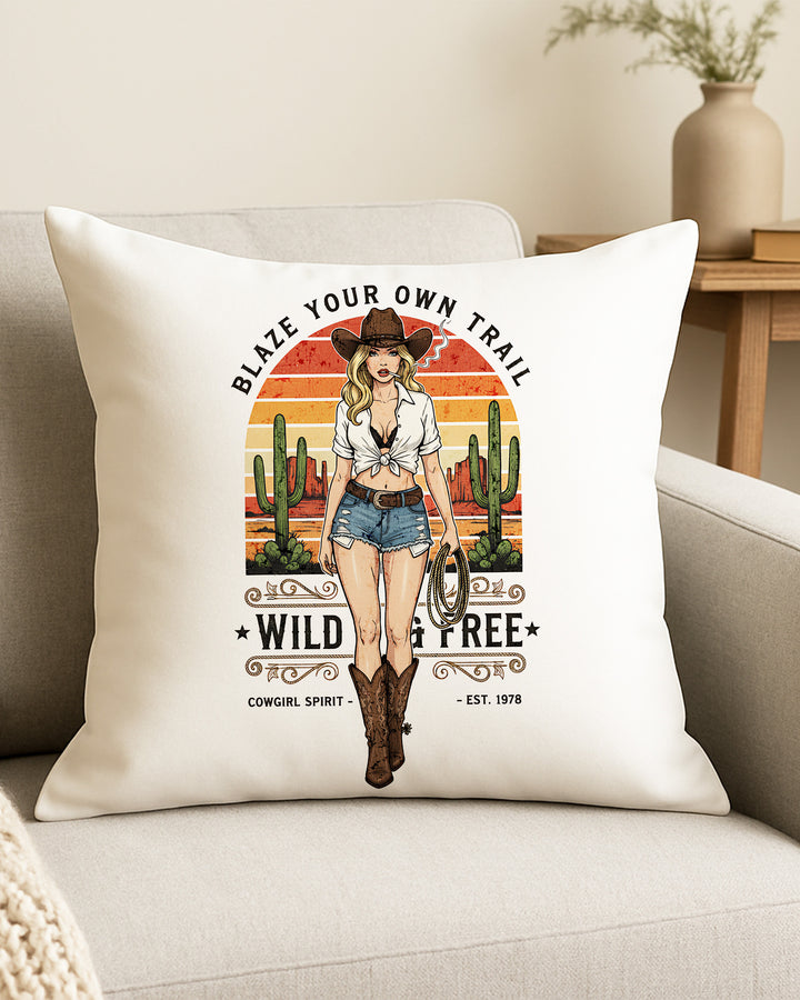 Pillow Cushion Case Blaze Your Own Trail Wild and Free Cowgirl Spirit GPL0229