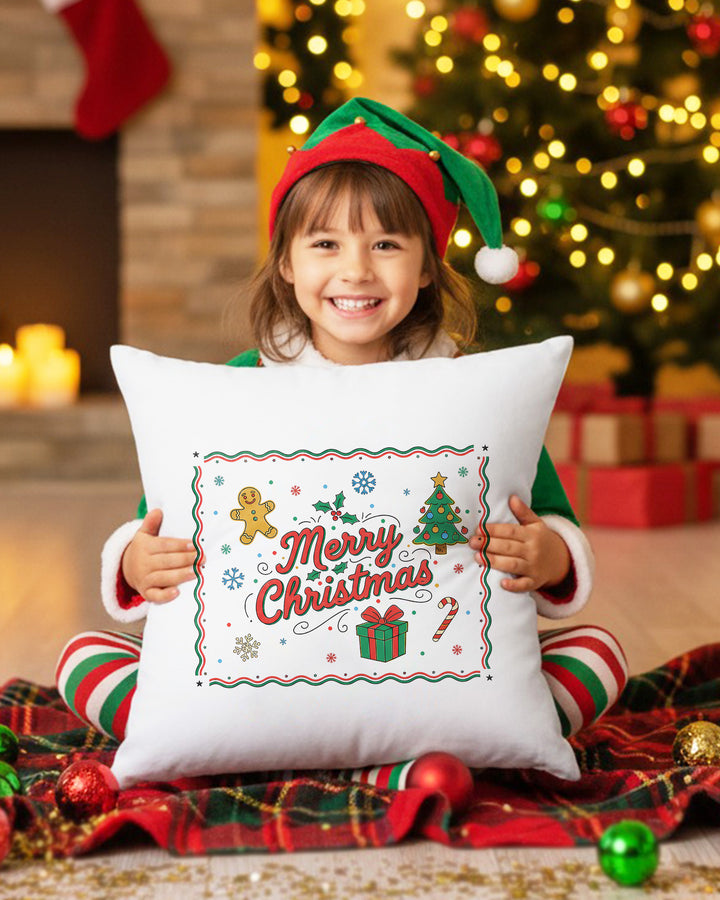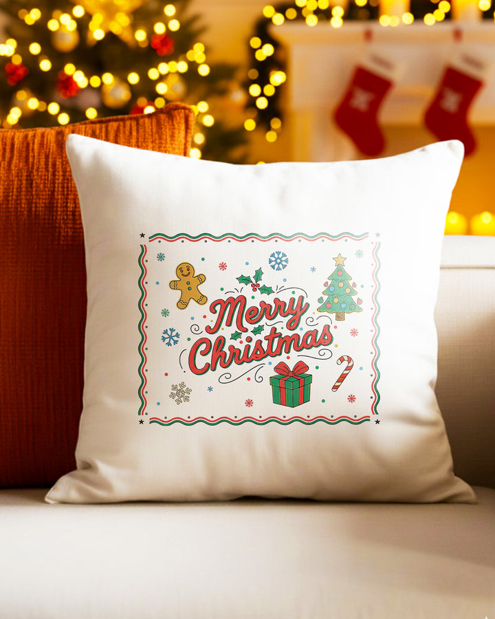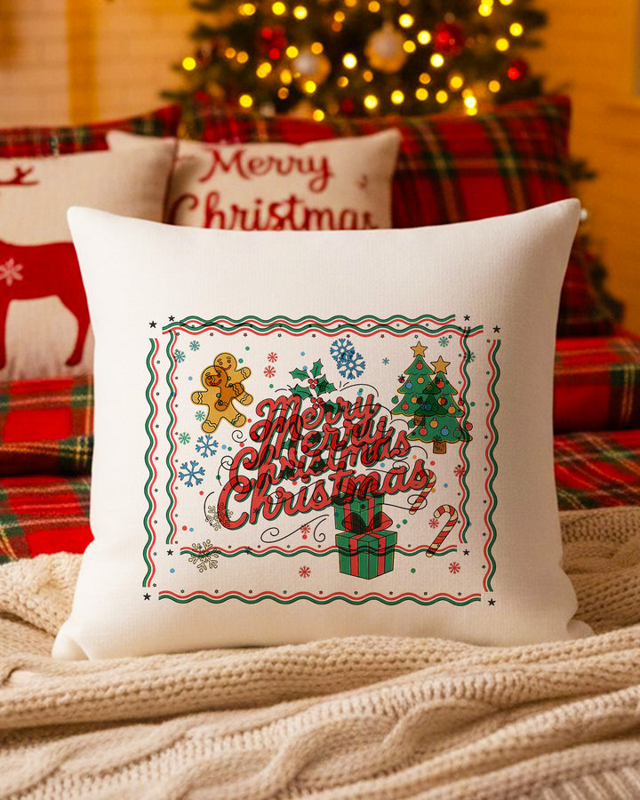Pillow Cushion Case Merry Christmas Gingerbread Tree Candy Cute Christmas GPL0203