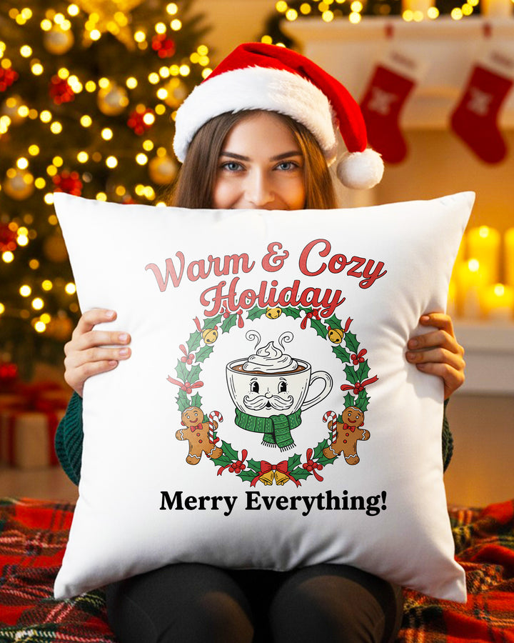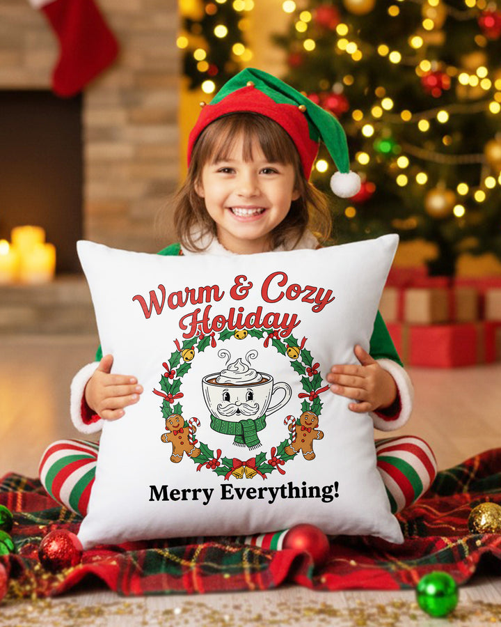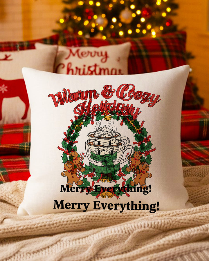 Pillow Cushion Case Merry Everything Cocoa Wreath Cute Christmas GPL0204