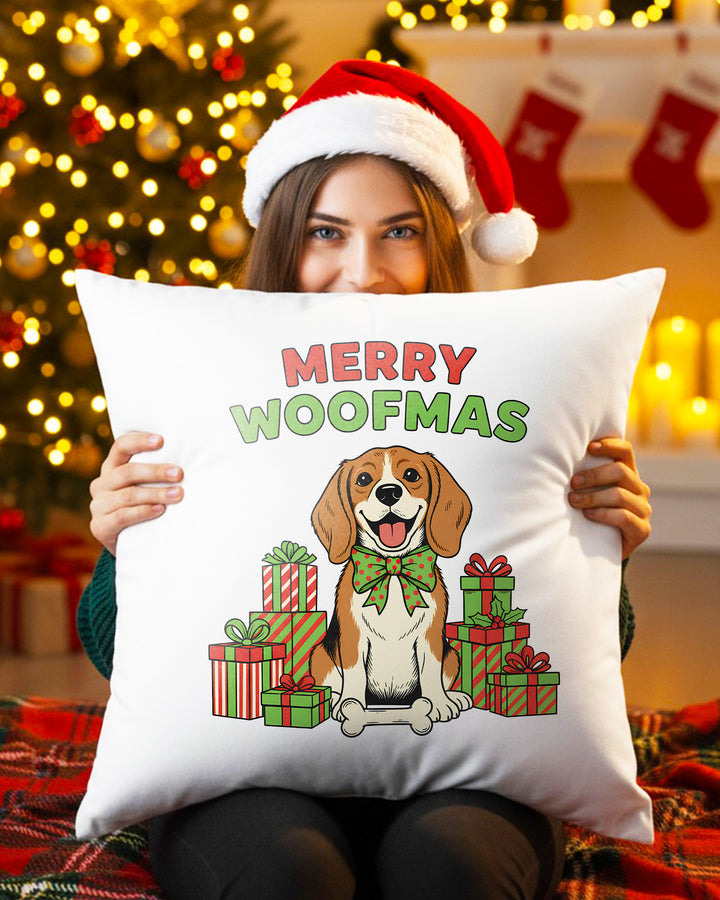Pillow Cushion Case Merry Woofmas Beagle Gifts Cute Christmas GPL0206