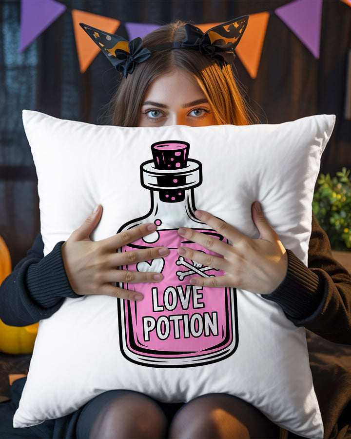 Pillow Cushion Case Pink Love Potion Bottle Skull Heart Cute Halloween GPL087