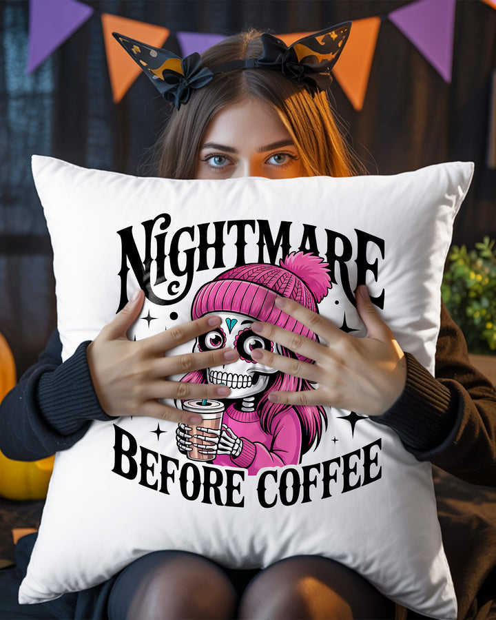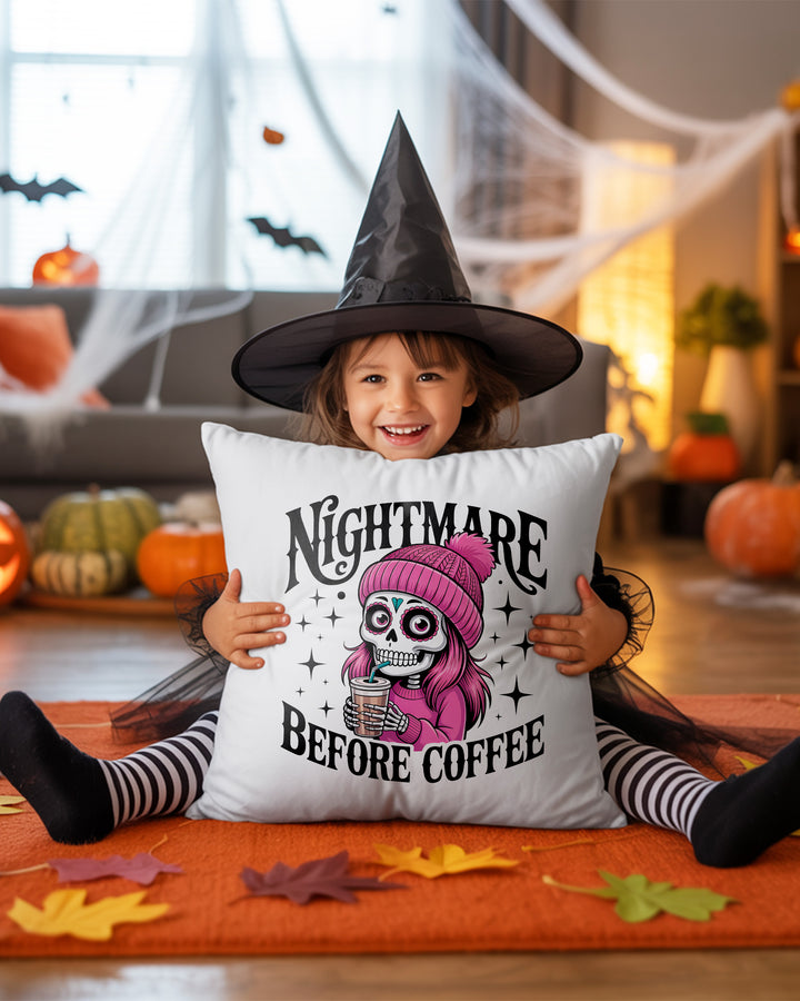 Pillow Cushion Case Sugar Skull Girl Coffee Hat Cute Halloween GPL0175