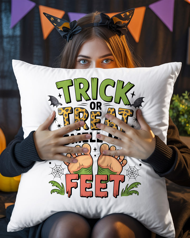 Pillow Cushion Case Trick Or Treat Smell My Feet Halloween Cute Halloween GPL0176